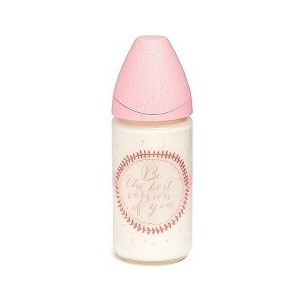 Скляна пляшечка Suavinex (Суавінекс) Сенс життя з 3-позиційною соскою підходить для годування малюка від народження до 6 місяців.