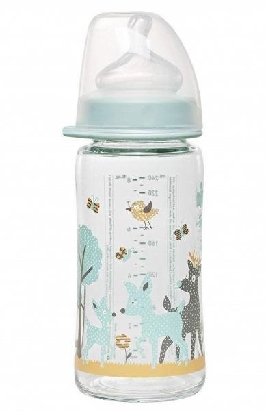 Пляшечка скляна Nip Олені забезпечує легке та комфортне годування малюка. Основні переваги: виготовлена з якісного обробленого скла, прикрашена стійким до води і пошкоджень малюнком. Пляшечка має м'яку силіконову соску анатомичної форми з антиколіковим отвором. Соска захищає від захоплення повітря під час годування, що попереджає появу коликів. Середній потік соски дозволяє використовувати пляшечку для малюків.