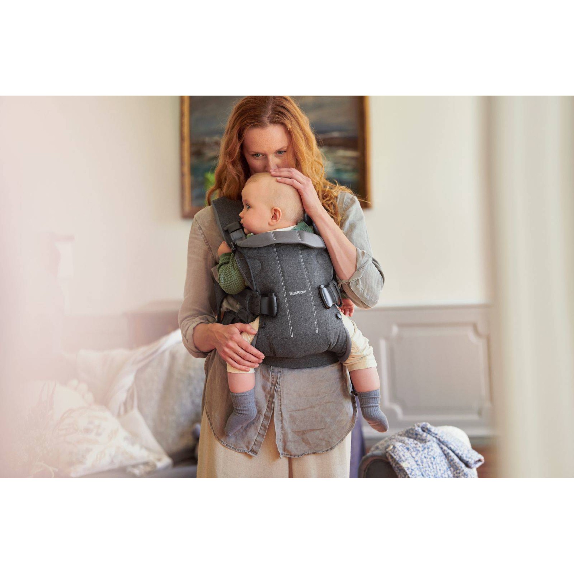 BabyBjorn ONE росте разом з малюком. Це можливо завдяки плавному регулюванню ширини сидіння, вбудованій вставці, плавному регулюванню підголівника і всіх ременів. Переноска ONE - це 4 положення для перенесення, які ви можете змінювати самостійно простим і безпечним способом.