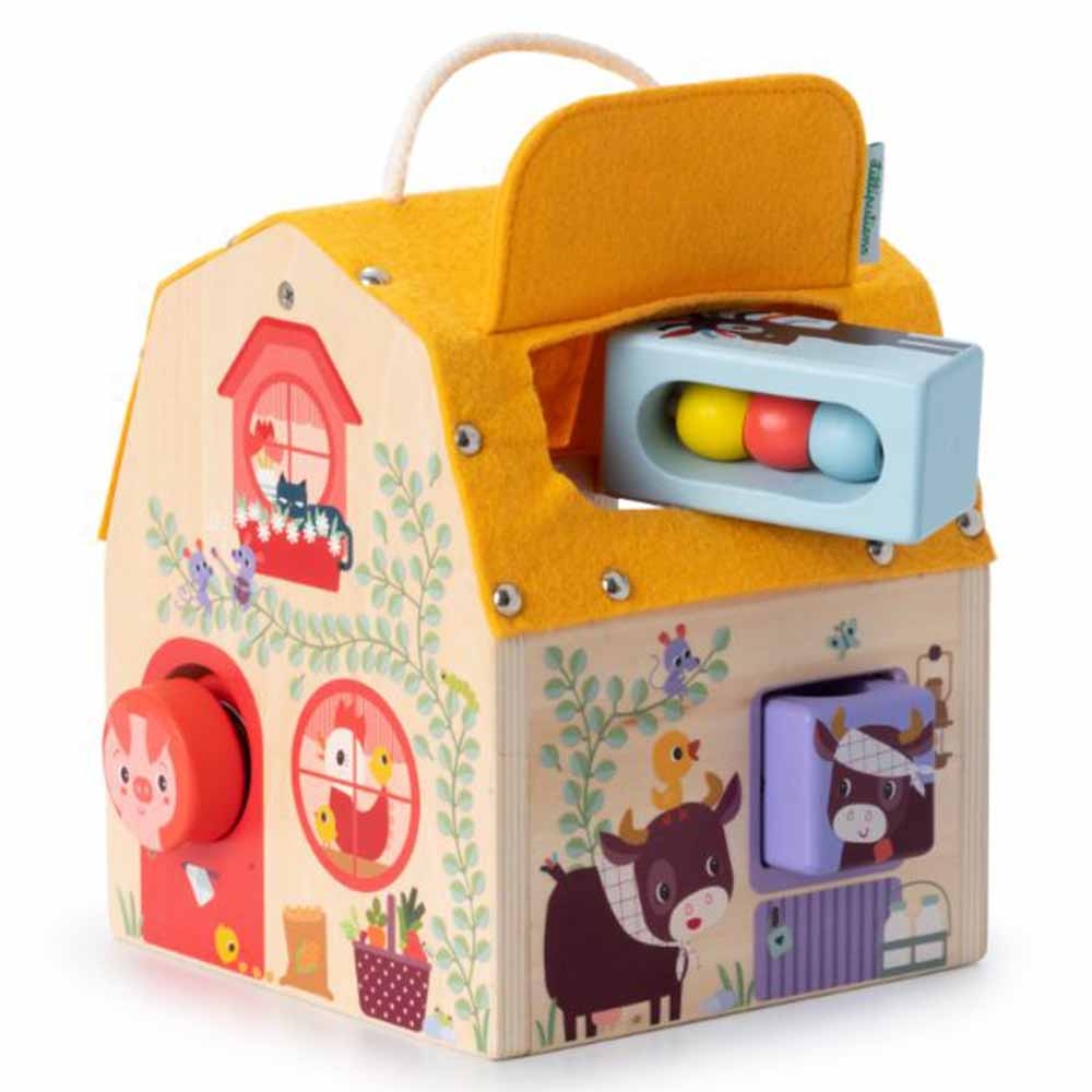 Сортер Lilliputiens Ферма (83445) з усіх боків цього чудово ілюстрованого дерев'яного будинку можна знайти так багато цікавого. На фермі настав час вечірки. Допоможіть тваринам увійти до будинку, зіставляючи форми та кольори. Кожна тварина має різну форму та звук. Свято для рук, вух та мозку вашої дитини.