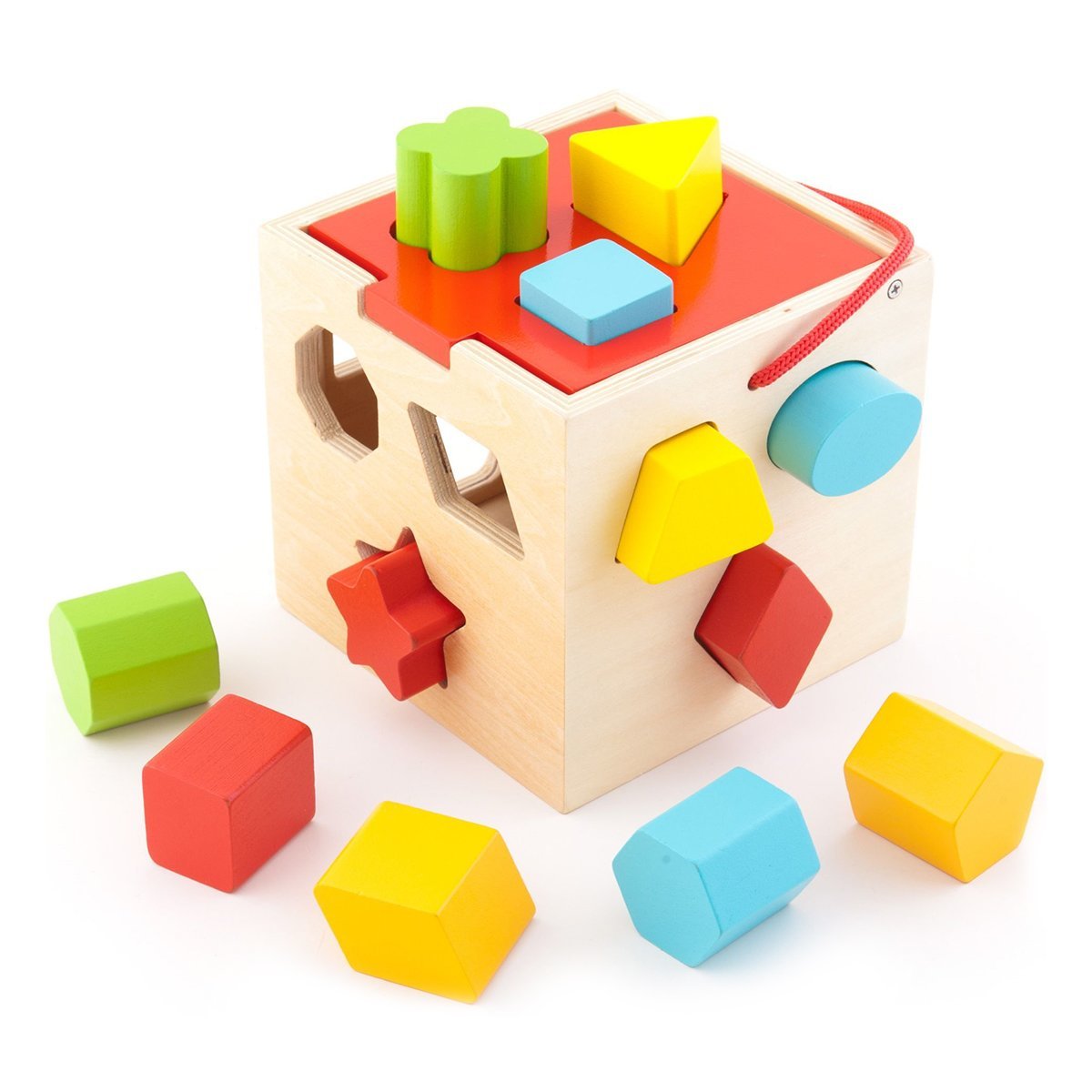 - іграшка познайомить дитину з основними геометричними фігурами та навчить розрізняти кольори, потренує логічне мислення, координацію рухів та дрібну моторику