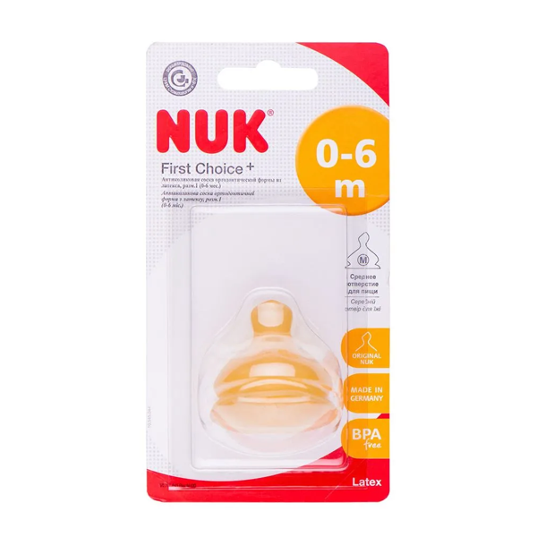 Соска латексна Nuk First Choice Plus забезпечує процес вигодовування, максимально наближений до природного.