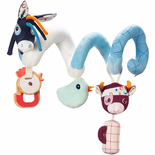 Спіральна іграшка на коляску Lilliputiens Ферма (83335) ідеальна іграшка для малюків, яку можна прикріпити на коляску, автокрісло та ліжечко.