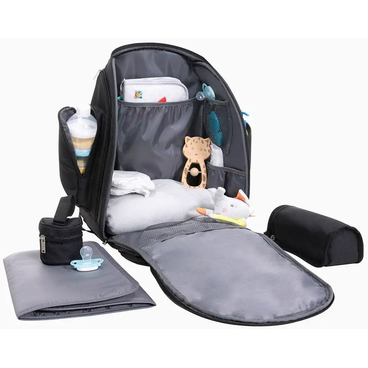 Стильний та практичний аксесуар для батьків, які піклуються про зручність під час прогулянок із малюком. Сумка має багато відділень для зберігання підгузків, пляшечок, іграшок та інших необхідних речей. Її зручно носити як на плечах, так і в руках завдяки регульованим ременям і ручкам. Чорний колір робить рюкзак універсальним і непомітним, а також стійким до забруднень.