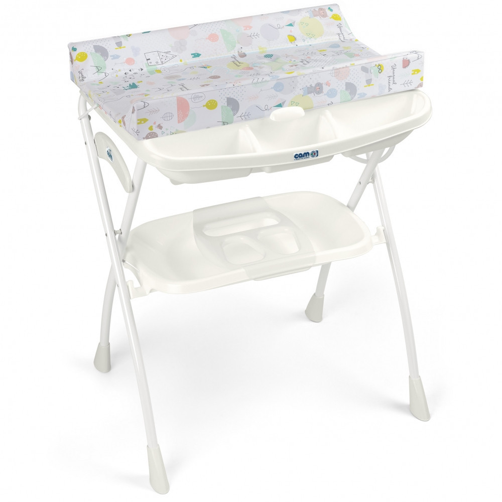Столик для сповивання CAM Volare з м'яким матрацом із системою запобігання падінню. Ванночка має два сидіння, що не ковзаються: нахилене сидіння для малюків 0-6 місяців і друге з підлокітниками — для малюків від 6 до 12 місяців. Відділення для губки та мила. Заглушка та шланг для зливання води. Ящик для пляшечок. Ідеальний для невеликих ванних кімнат, встановлюється на ванну (або на шафку не менш ніж 40 см заввишки) Компактне складання. Ідеальний для дітей до 15 кг.