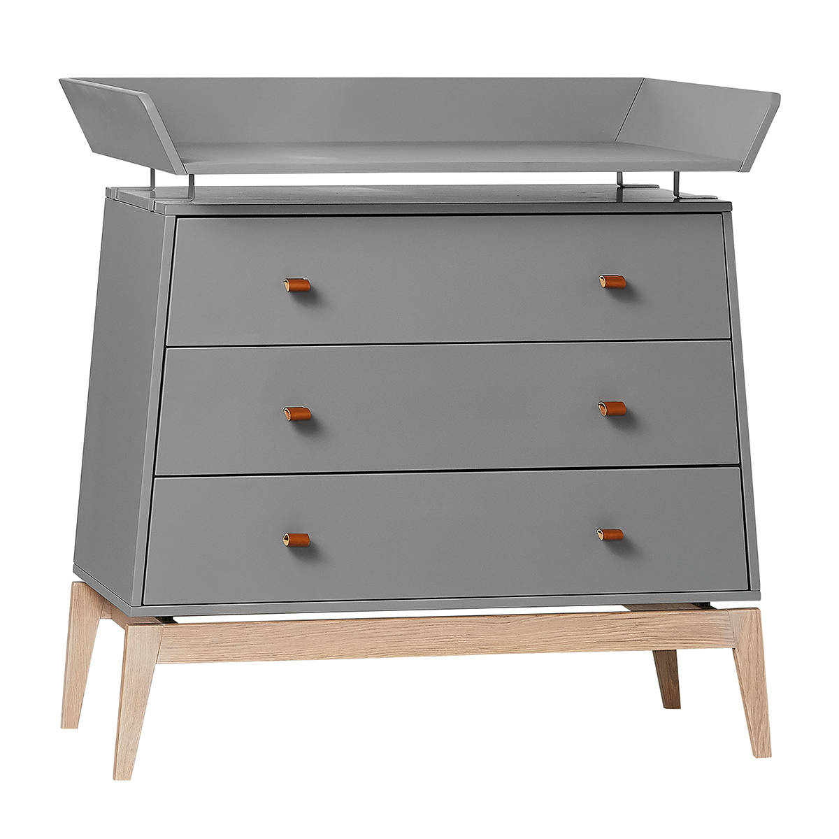 Підготуйте місце для сповивання на комоді Leander Luna за допомогою спеціального столика. Він елегантно перетворює шафку для зберігання речей на функціональну та безпечну зону для догляду та переодягання.