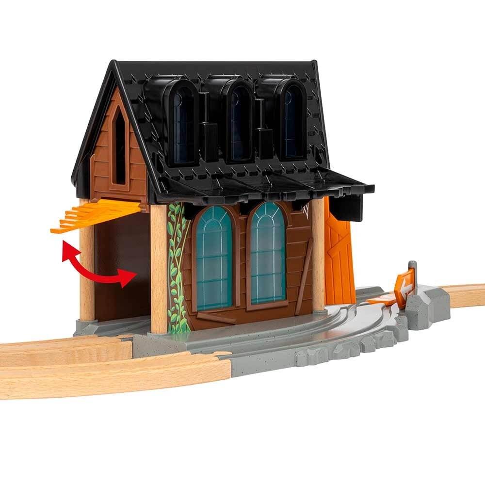 - Відправте Локомотив BRIO Smart Tech зі звукозаписом (33971) (не входить у комплект) через зламані двері та спостерігайте, як станція оживає з моторошними світловими та звуковими ефектами.