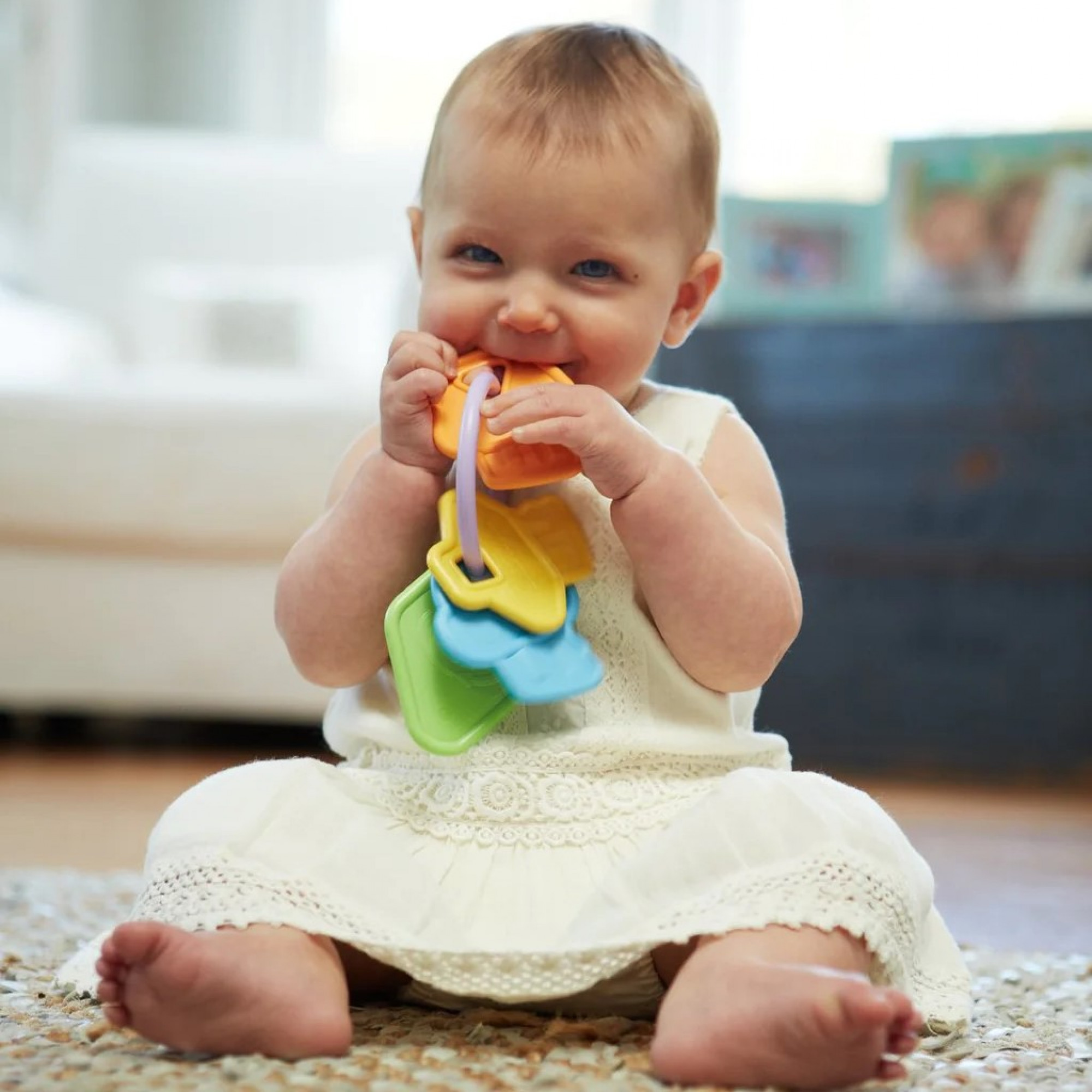 У стартовий набір Green Toys входять перші ключі, пірамідка – стаканчики та слон на колесах. Безпечний набір із 4 барвистих ключів та підвісок унікальної форми легкий, і його легко тримати в руках. Пірамідка складається з 6 градуйованих пронумерованих склянок для ігор чи купання. Їх можна штабелювати в башту або вставляти один в одного для зручності зберігання. Слон на колесах має зручну ручку.