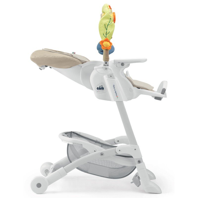 Новий багатофункціональний стільчик Cam Istante ідеально підходить для годування, ігор і сну! Легкий у використанні, завдяки спеціальній запатентованій технології регулювання за висотою та зручному складанню однією рукою — фіксація за допомогою кік-стенда. Безпечний для дітей — гострих країв й кутів немає. Має м'яку оббивку з покриттям із м'якої штучної шкіри, яка ідеально підходить для годування. Також у комплект входить двостороння плюшева накидка для сну та п'ятиточковий ремінь безпеки. Може використовуватися як колиска зі знімною аркою для іграшок.