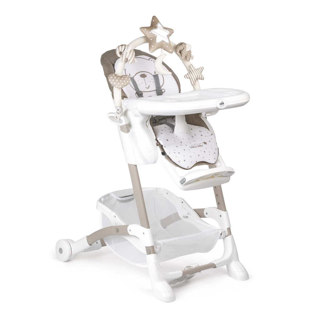 Особливості: 7 рівнів регулювання за висотою. Спинка регулюється в 4 положеннях. Підходить для дітей від народження. Підніжка регулюється за висотою (3 положення) і довжиною. Є 2 таці й відділення для зберігання. Оббивка зі штучної шкіри, є літній й зимовий боки оббивки. 5-точкові ремені безпеки. Ігрова підвіска обладнана знімними м'якими іграшками, дзеркальцем і брязкальцем. Є 2 позиції фіксації підлокітників. Задні коліщата. Просторий кошик. Дуже легко чистити губкою каркас і оббивку, знімні та мийні покриття при температурі 30 °C. Компактне зберігання. Простота у використанні.