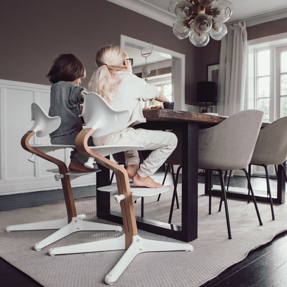 Концептуальний стільчик Stokke® Nomi® Walnut із горіху створено, щоб надихати на активне сидіння. Відкритий силует стільчика та широка платформа для ніг гарантують свободу рухів дітям будь-якого віку.