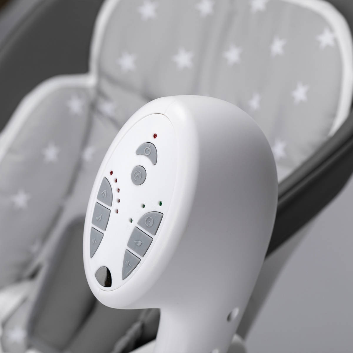 Використовуючи його як дитячу гойдалку, це відмінне рішення для сімей, які хочуть задовольнити різноманітні потреби своїх дітей одним продуктом. Видаливши трап і встановивши арку іграшок, годувальний стілець легко перетворюється в дитячу гойдалку, де ви можете встановити 5 різних швидкостей гойдання, які ви можете контролювати за допомогою пульту дистанційного керування. Гойдалка також обладнана таймером і детектором руху. 12 мелодій і 5 звуків природи розважать вашу дитину під час гойдання. Підключивши його до адаптера або батареї, ви можете легко переміщати його з місця на місце. Як гойдалка, вона підходить для дітей від народження до 9 кг.