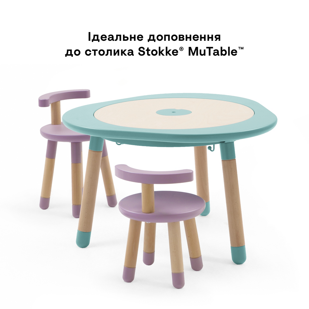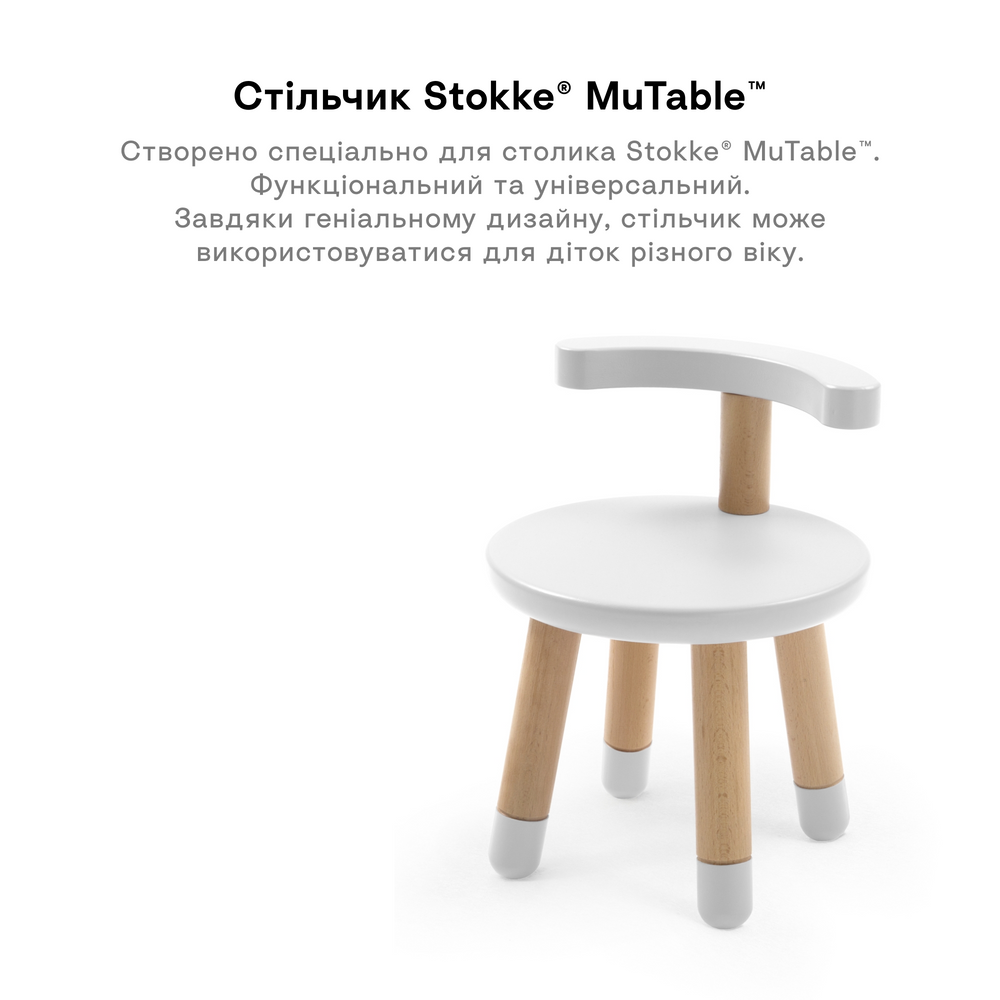 Найзручніше місце за ігровим столом Stokke® MuTable™ – це міцний, безпечний та інноваційний стілець Stokke® MuTable™.