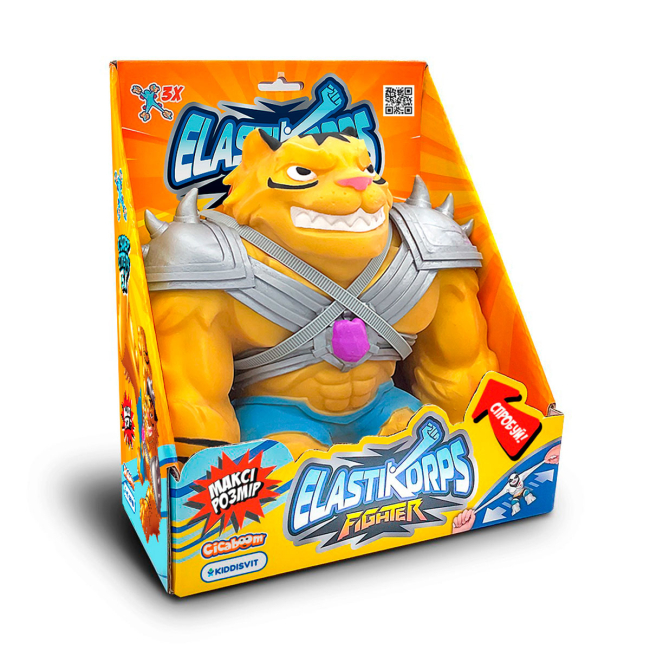 Стретч-антистрес Elastikorps Maxy Fighter Золотий тигр супереластичний, розтягується в 3 рази від свого початкового розміру. Скручуйте, розтягуйте, а він легко повернеться до початкового вигляду. Тигр завжди бореться на рингу до останнього гонгу. Його важко перемогти, бо він тренується у джунглях. Перевірте його силу на рингу! Чудово підходить для зняття стресу.