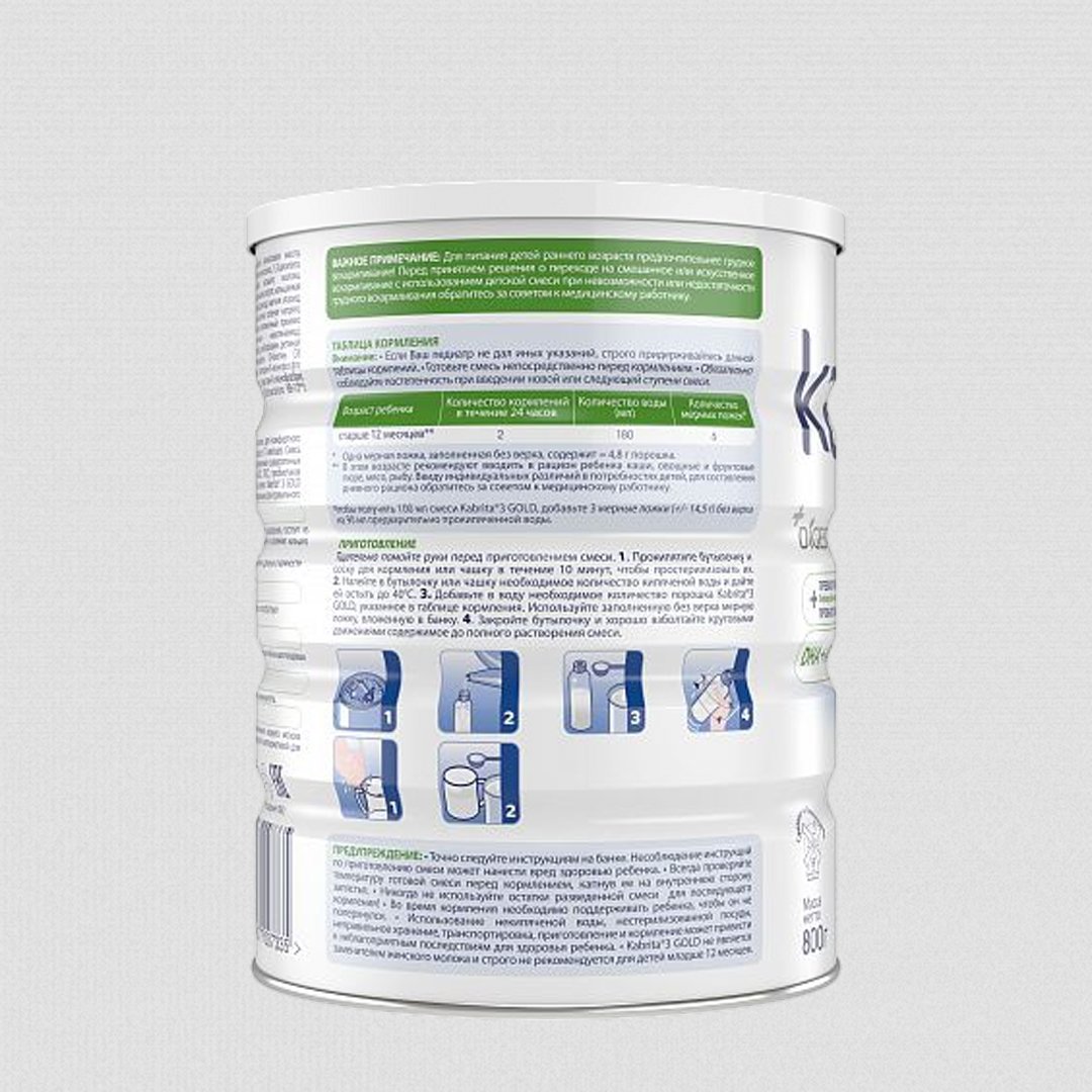 • Kabrita 3 GOLD - ніжний молочний напій з м'яким вершковим смаком. Продукт отриманий з натурального нідерландського козячого молока з додаванням цінної козячої сироватки. Дві порції Kabrita 3 в день компенсують до 50% кальцію, 30% заліза і 70% йоду від добової потреби малюка. Козяче молоко і продукти на його основі добре засвоюються і переносяться. Суміш "Кабріта-3" рекомендована дітям старше року. Склад збагачений DigestX - комплексом жирів з бета-пальмітатом, подібним жировому профілю грудного молока. Він знижує ймовірність запорів, покращує енергообмін і засвоєння кальцію. Поліпшенню травлення і зміцненню імунітету сприяють також пребіотики і пробіотики. Присутні в суміші жирні кислоти DHA (ω-3) і ARA (ω-6) необхідні для правильного розвитку мозку і зору, нуклеотиди - для зміцнення імунітету. Артикул 781340.