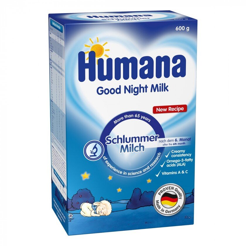 Humana «Солодкі сни» – суха молочна суміш для здорових малюків. Рекомендується при нестачі грудного молока для догодовування або відсутності грудного молока для вигодовування. Humana «Солодкі сни» - збалансована суміш до потреб зростаючого малюка. Особливості вуглеводного складу роблять цю молочну суміш ситнішою, що є оптимальним рішенням для малоїжок та дітей, які не наїдаються.
