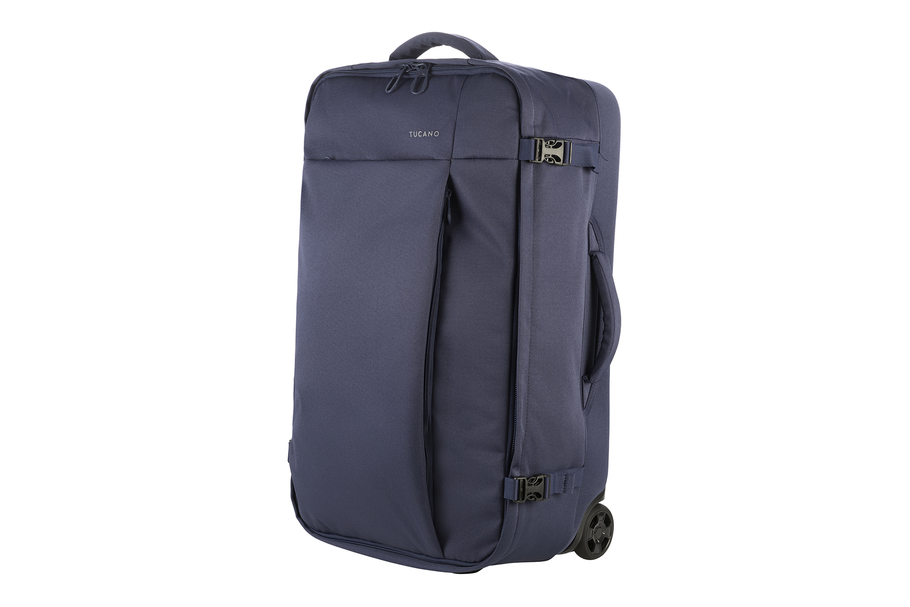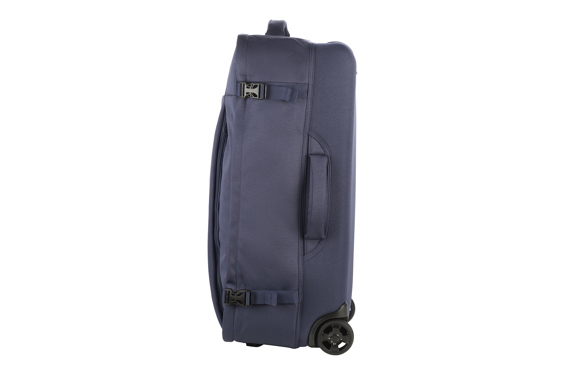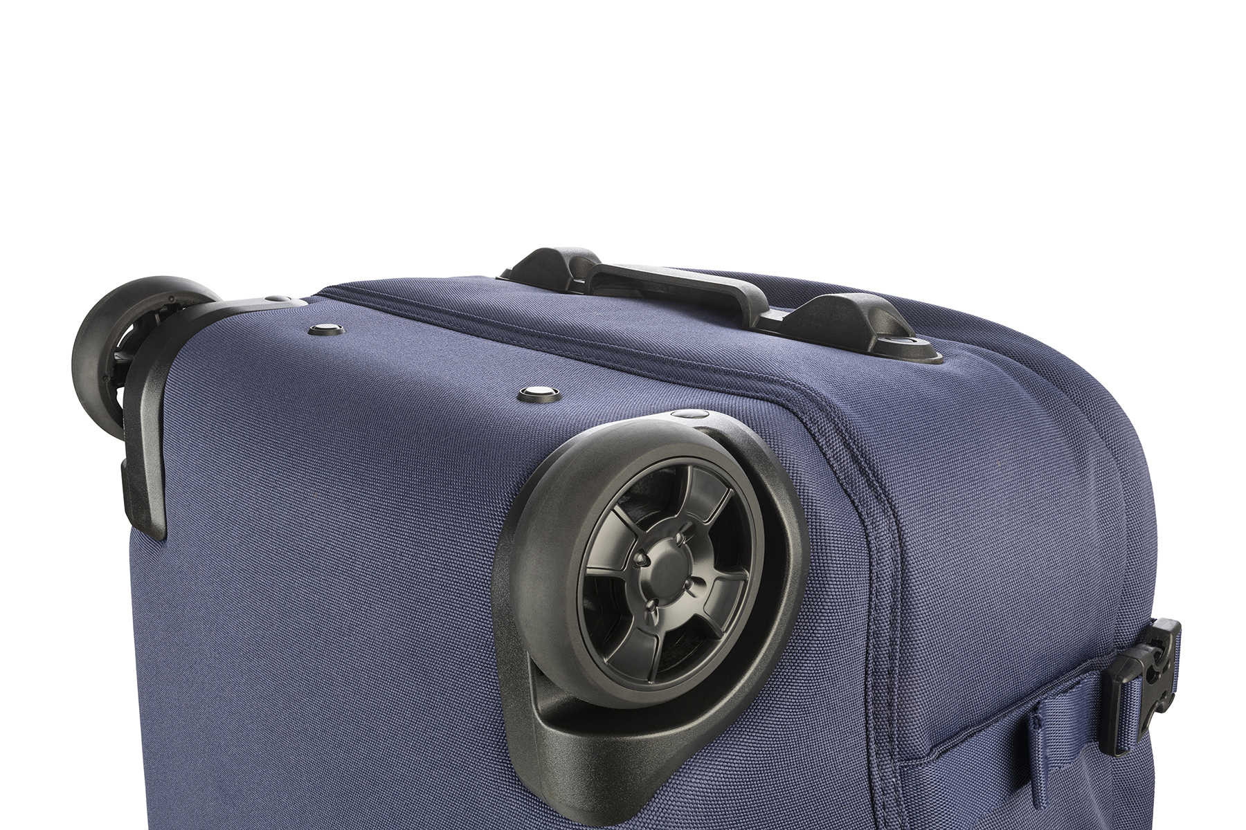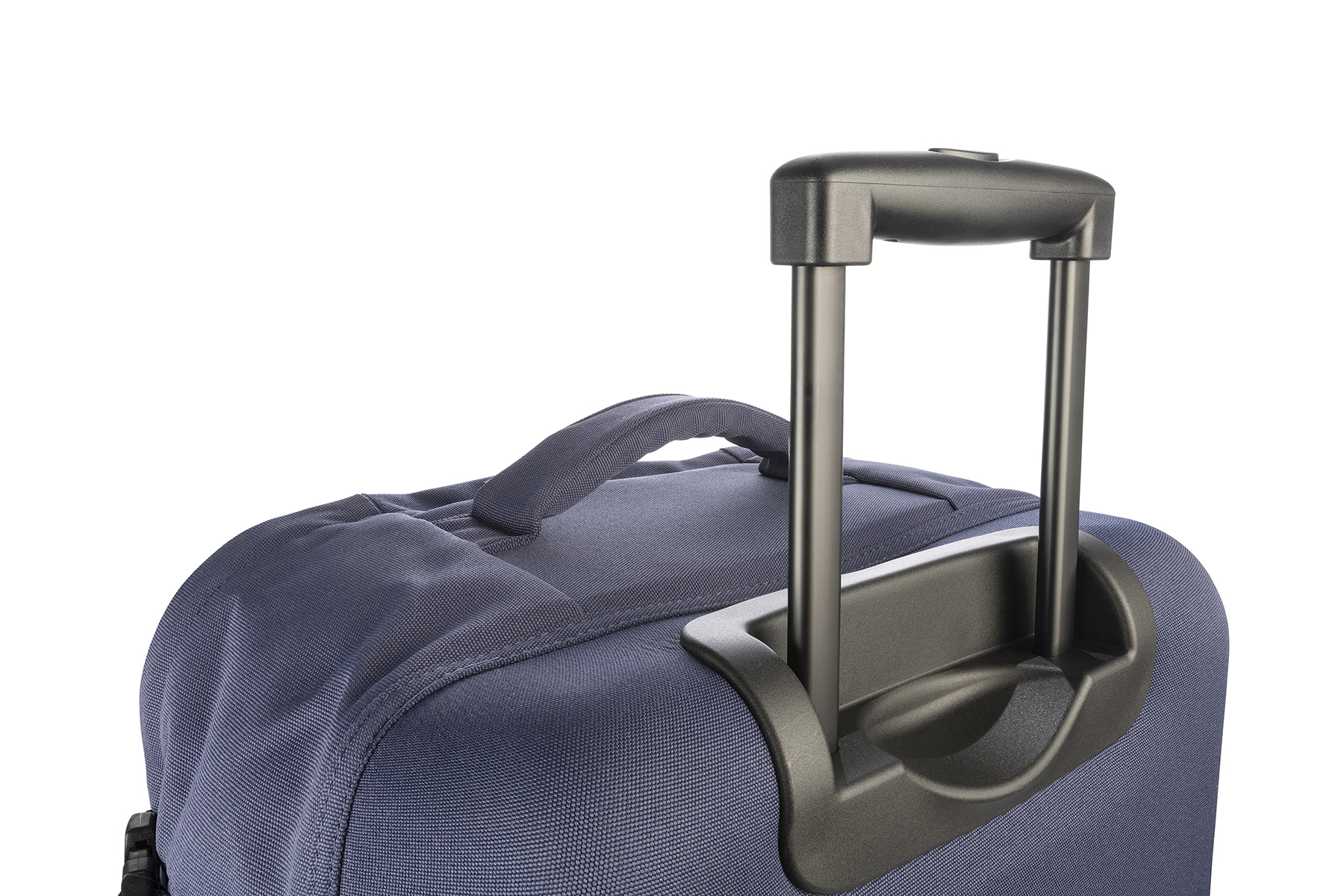 Двоколісна дорожня сумка з телескопічною ручкою з лінійки TUGO Trolley M. Основа та задня панель виготовлені з термоформованого матеріалу, і надають жорсткості всій конструкції. Велике головне відділення, що вміщує до 45 літрів корисного об'єму, і оснащене еластичними компресійними ременями для забезпечення фіксації вашого одягу/поклажі. На передній панелі розташовані дві просторі, швидкодоступні кишені на блискавці.Зовні розташовані дві зручні м'які ручки, зверху та збоку, що полегшує захоплення та перенесення. Кришка головного відсіку відкривається блискавкою з двома бігунками.