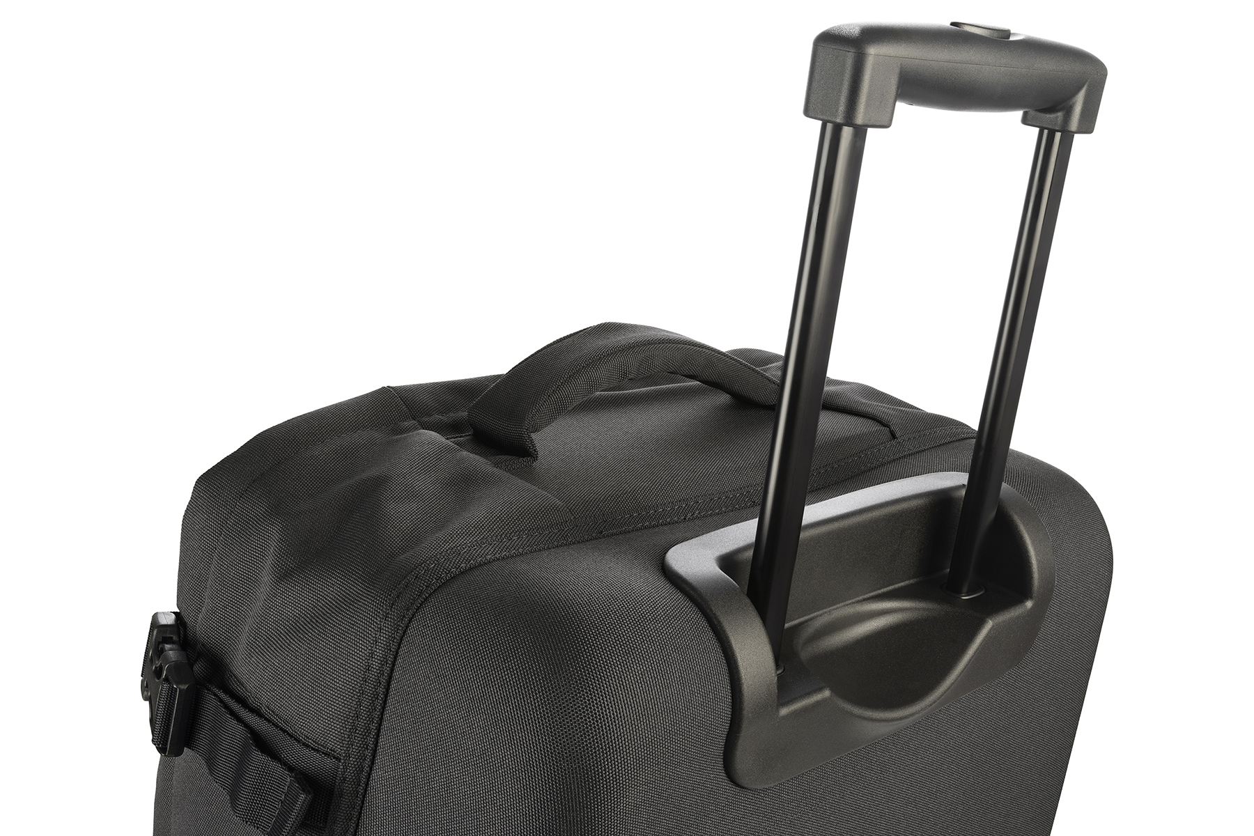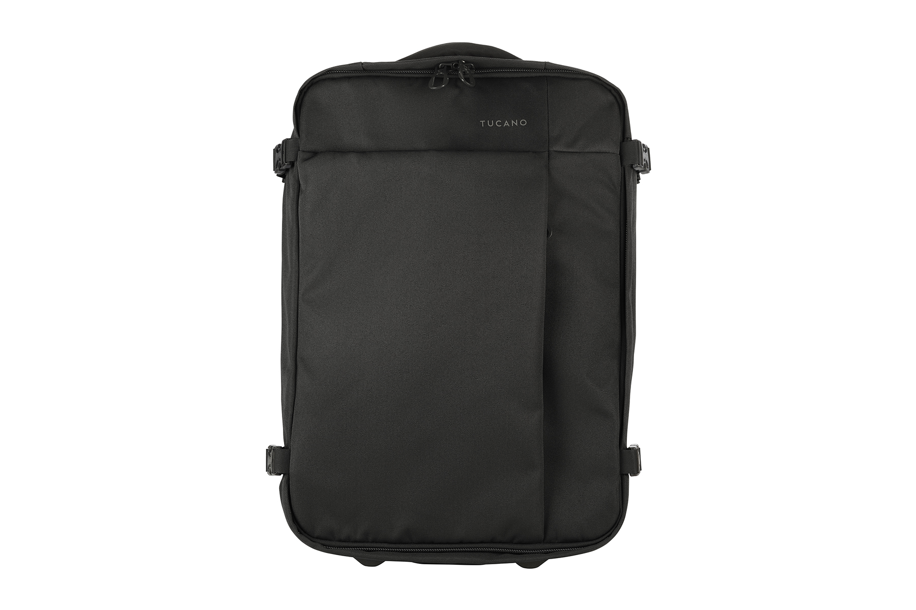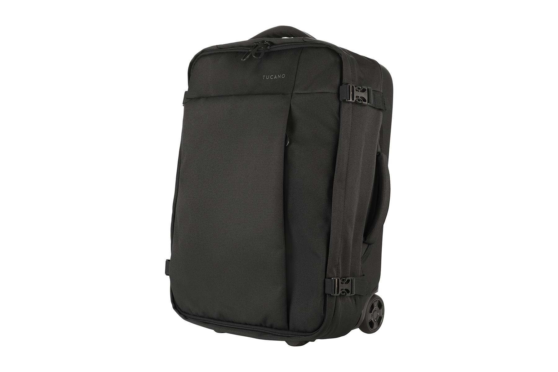 Валіза двоколісна Tucano Tugo S Trolley стане кращим помічником у подорожах. Вона вироблена із текстилю чорного кольору, тканина міцна і водовідштовхувальна. Валіза оснащена безшумними та зручними колесами, а окрім основної телескопічної ручки, має додаткову - зверху та збоку. Всередині є один великий відділ і 2 маленькі додаткові кишені. Вага 2,3 кг, об’єм 34 л.