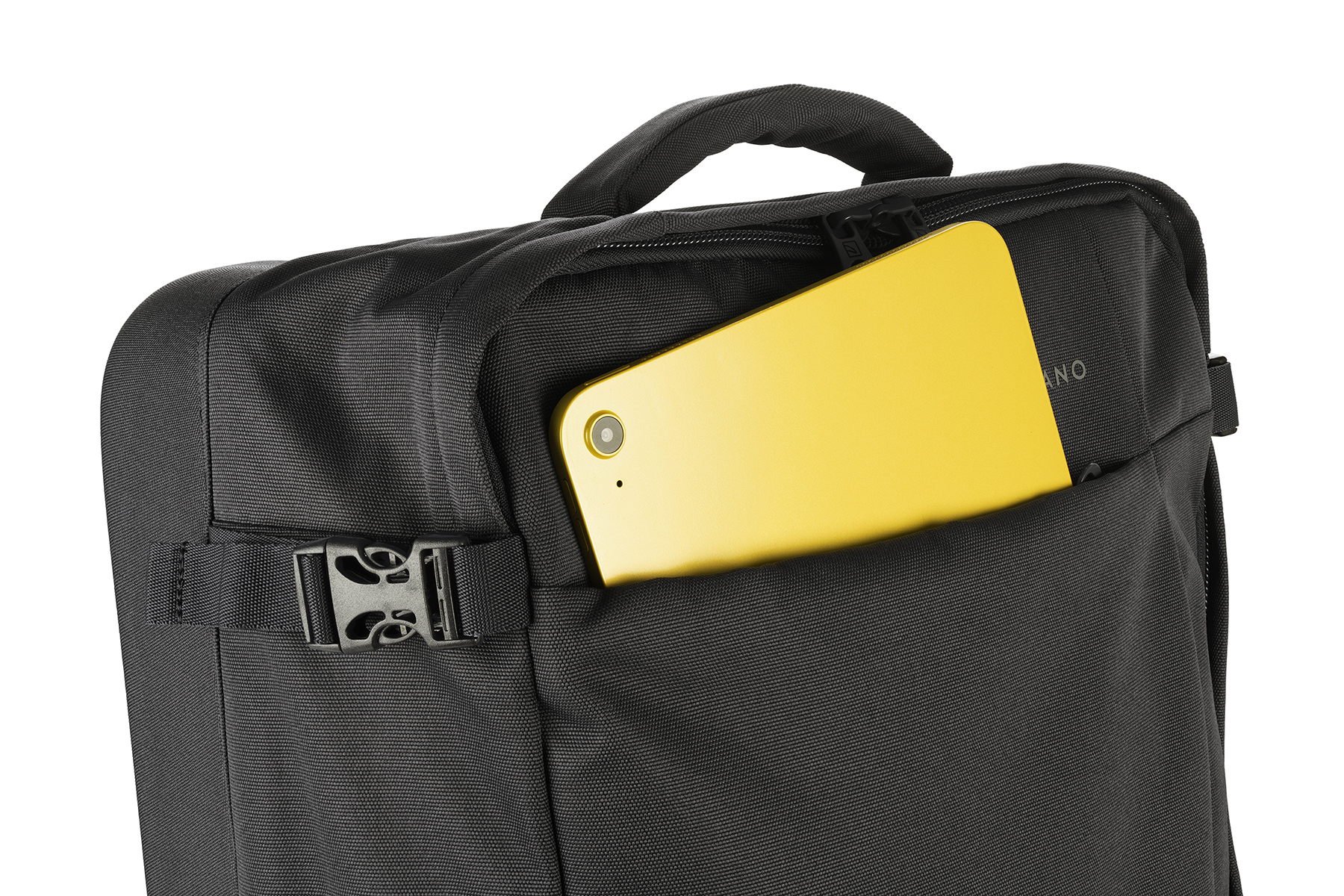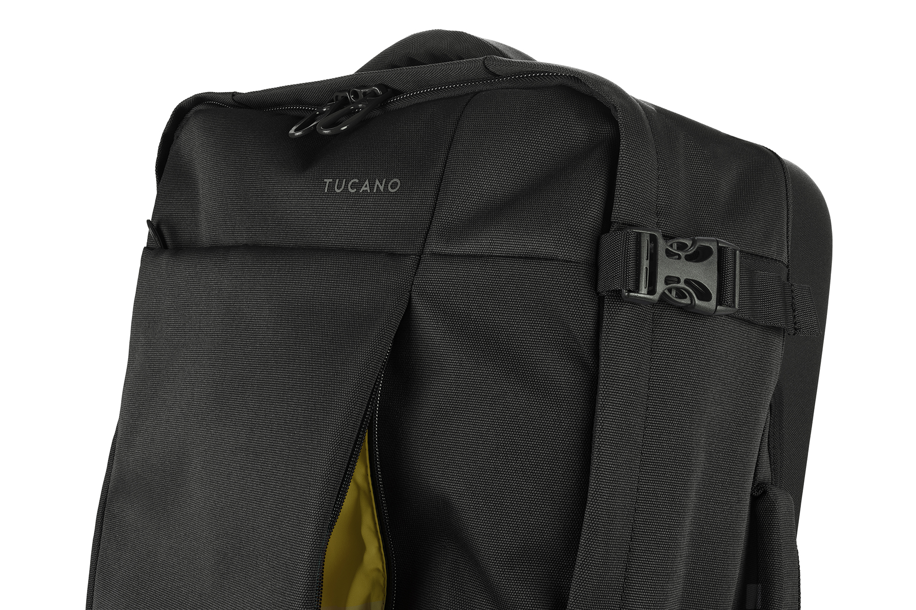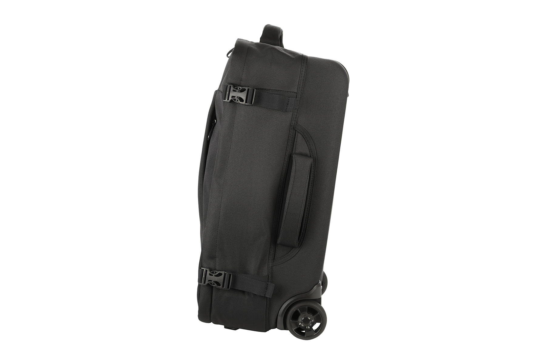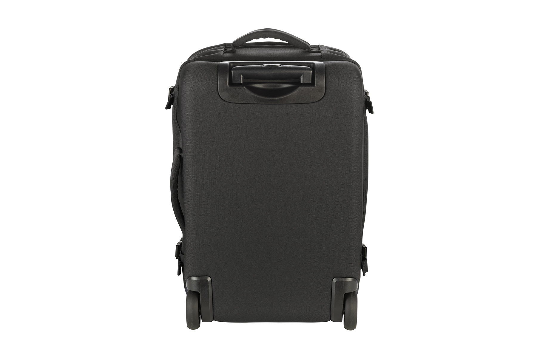 Валіза двоколісна Tucano Tugo S Trolley стане кращим помічником у подорожах. Вона вироблена із текстилю чорного кольору, тканина міцна і водовідштовхувальна. Валіза оснащена безшумними та зручними колесами, а окрім основної телескопічної ручки, має додаткову - зверху та збоку. Всередині є один великий відділ і 2 маленькі додаткові кишені. Вага 2,3 кг, об’єм 34 л.