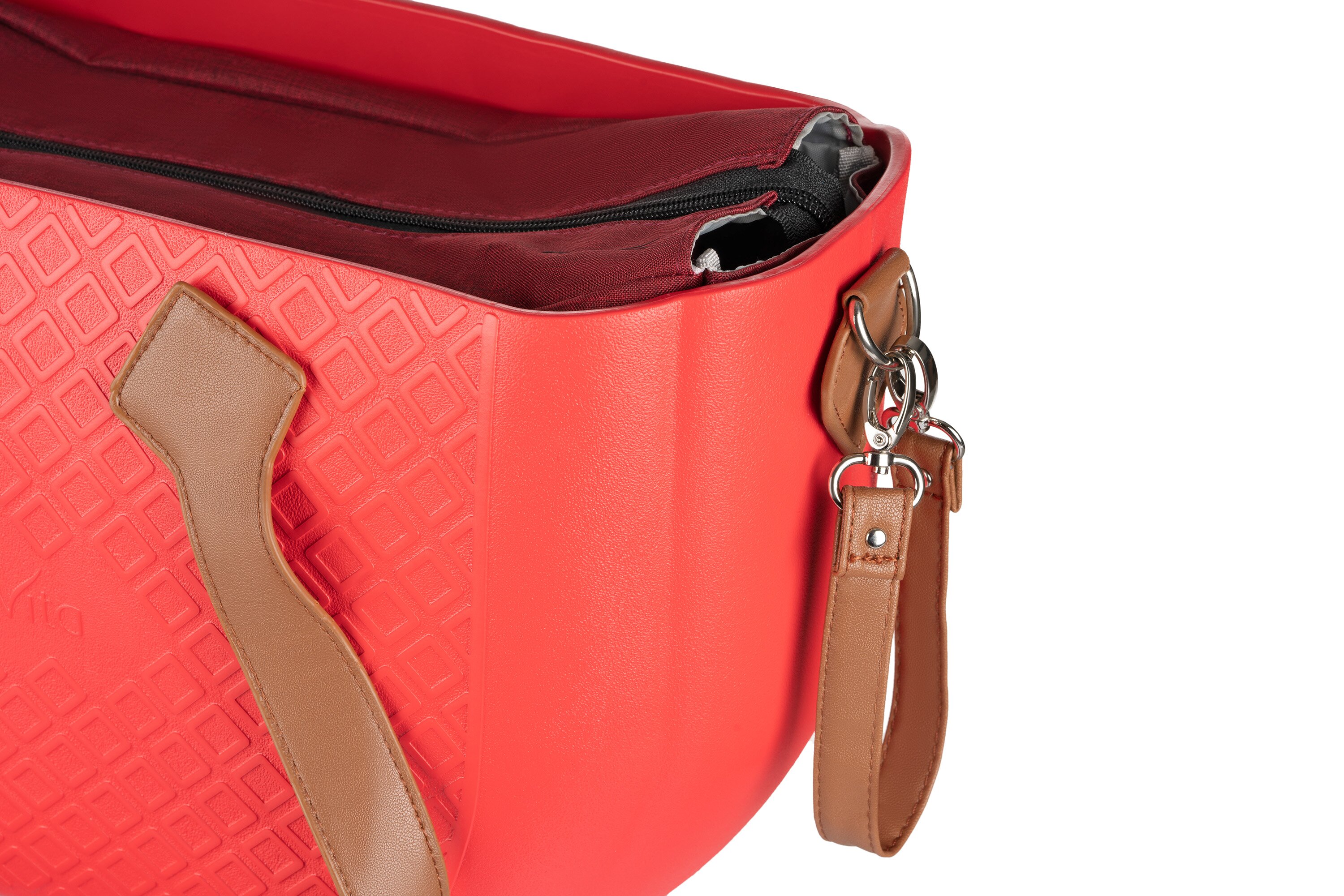 1) дуже легкого корпусу, виготовленого з інноваційного запатентованого XL EXTRALIGHT матеріалу, завдяки якому сумка важить всього 700г (в тому числі і з внутрішньою частиною з усіма кишенями та відділеннями), і володіє водонепроникними, антимікробними та легко мющіміся властивостями. Розмір корпусу: 45 х 15 х 24 см.