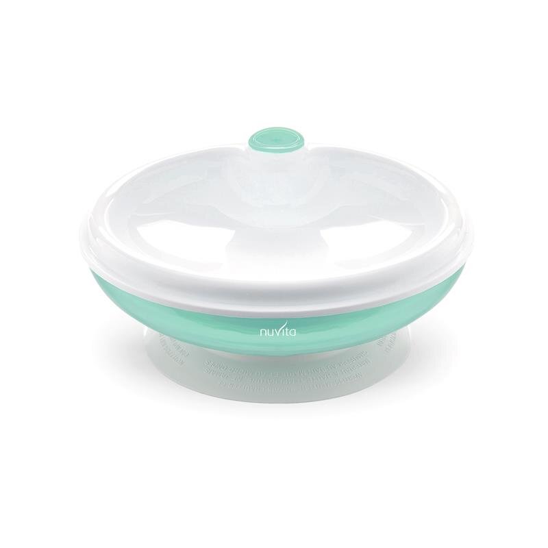 Тарілочка з підігрівом зеленого кольору для немовлят, розроблена італійським брендом Nuvita. Вона оснащена невеличким отвором, у який заливається гаряча вода для утримання дитячого харчування в теплі. Тарілочка із нековзним дном буде впевнено стояти на поверхні стола. Вироблена із міцного і безпечного пластику, який не містить у складі бісфенол-А та фталати. Для немовлят з 6 місяців.