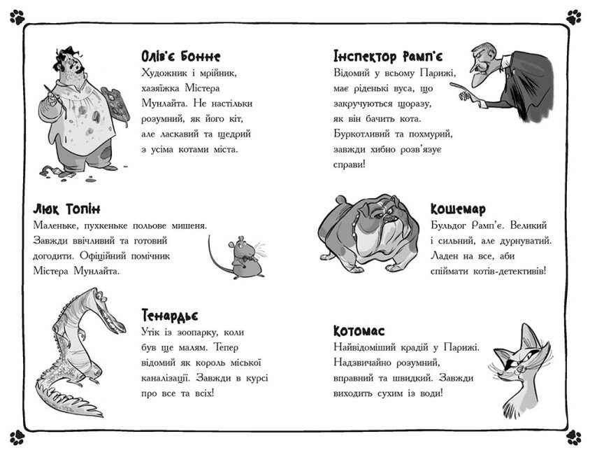 Олів’є Бонне приймає у себе рідного брата Луїзона, щоб той за декілька днів взяв участь у конкурсі на найкращі ковбаски Франції. Маючи при собі два ящики смачнючих ковбасок, чоловіки вирішують залишити їх зберігатися у підвалі будинку. Але вже на наступний ранок ящики опиняються порожніми! Поки Луїзон звинувачує своїх прямих конкурентів, коти-детективи будують власні версії. Для дітей віком від 6 років, які полюбляють детективи і котиків.