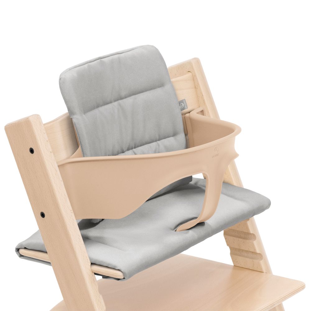 Текстиль можна використовувати як з встановленим комплектом-вставкою Tripp Trapp® Baby Set (від 6 місяців), так і без нього безпосередньо на стільчику Tripp Trapp (від 18 місяців).