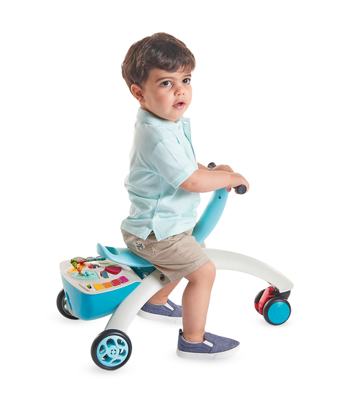 Особливості: толо-байк створений за принципом 5 в 1, довго послужить вашій дитині, має 5 режимів використання: сидіти і грати, стояти і грати, йти позаду, їздити на толо-байку, весело сидіти та грати, інноваційне регулювання швидкості з 3 режимами: повільно – для перших кроків малюка, ходити прямо – для початківців малюків та вершників, Go 360 Swivel – для просунутих райдерів, легко перемикається між режимами, яскрава електронна панель сприяє розвитку дитини, координації очей та рук, має електронні музичні кнопки з 2 режимами, Peek-a-boo, дзеркало, куля, що обертається з намистинами та пищалку.