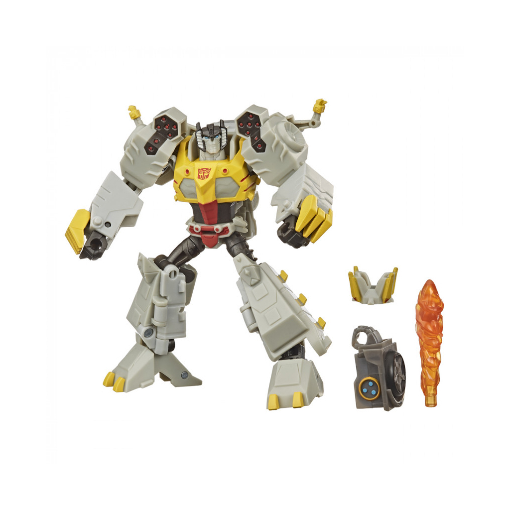 Герой мультсеріалу «Transformers: Cyberverse» Робот Transformers Cyberverse Deluxe Grimlock готовий до нових пригод в Кібервсесвіті. Трансформуйте робота в вогнедишного динозавра за 28 кроків, і останній крок трансформації активує фірмовий удар персонажа. Удар легко повторити знову і знову. Гра з персонажем мультсеріалу познайомить і зацікавить дитину світом Трансформерів, надихне її на створення власних історій з багатофункціональним роботом.