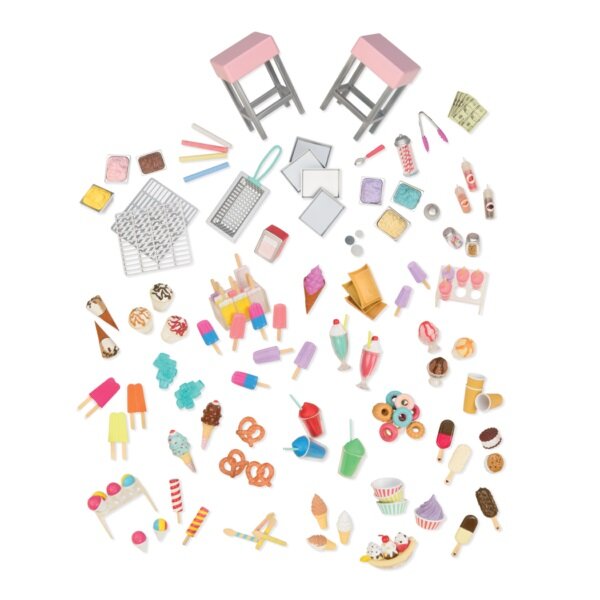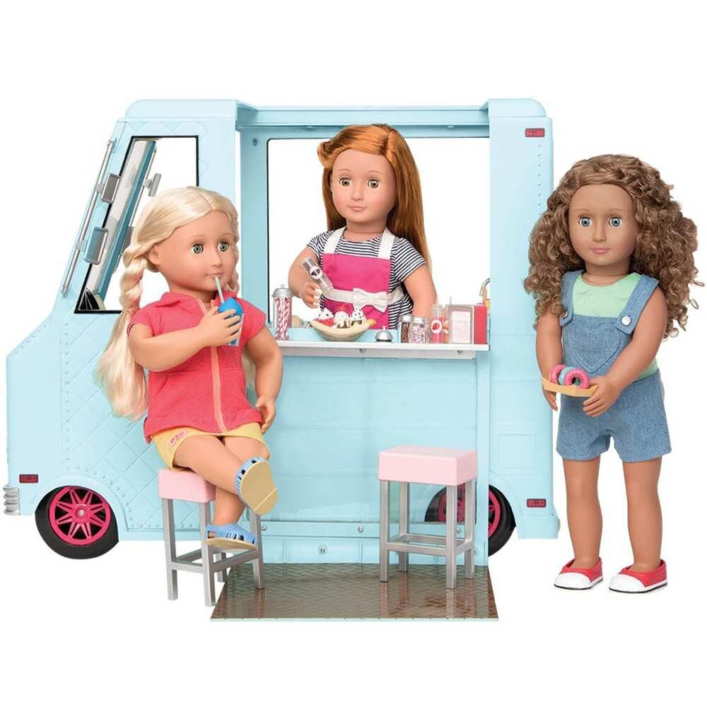 Смачне та освіжаюче морозиво – справжній порятунок у спекотні літні дні. Неймовірний фургончик від Our Generation стане чудовим подарунком, та доповненням у колекцію іграшок та аксесуарів американського виробника. Яскравий фургончик ніжно-блакитного кольору містить всередині безліч аксесуарів, серед яких: посуд, формочки для солодощів, морозиво та різноманітні смаколики, спеціальне приладдя для виготовлення морозива, меблі, гроші та багато іншого.