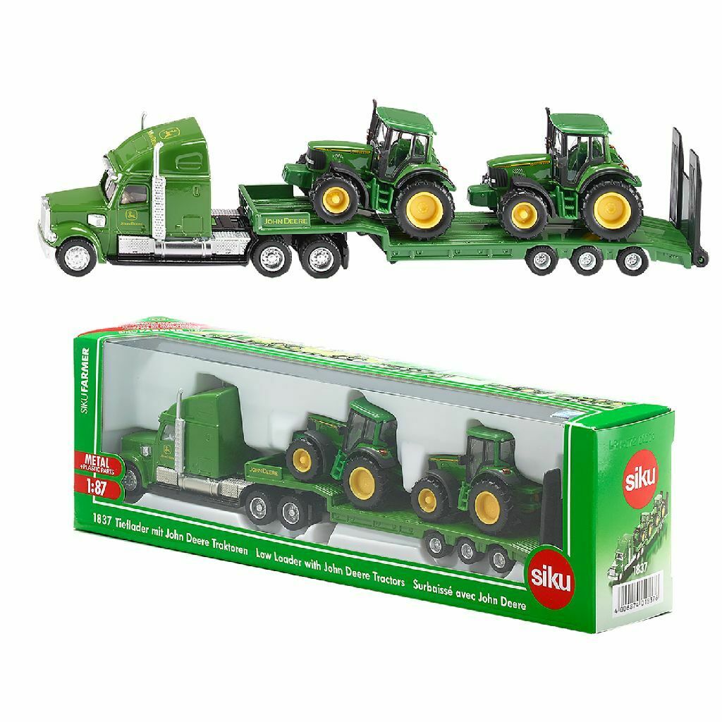 Трейлер Siku з тракторами John Deere стане чудовим поповненням автопарку дитини. З ігровою моделлю, що є зменшеною копію справжньої спецмашини, вона розігруватиме цікаві сюжети на дорозі або вигаданій фермі.