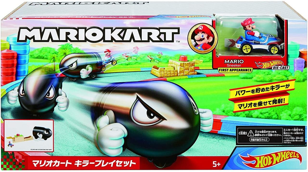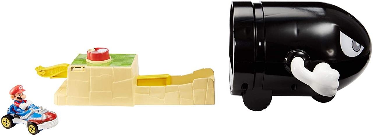 В набір входить пускова установка, відлитий під тиском автомобіль Mario в масштабі 1:64 і велика фігурка Bullet Bill з тяговим двигуном.