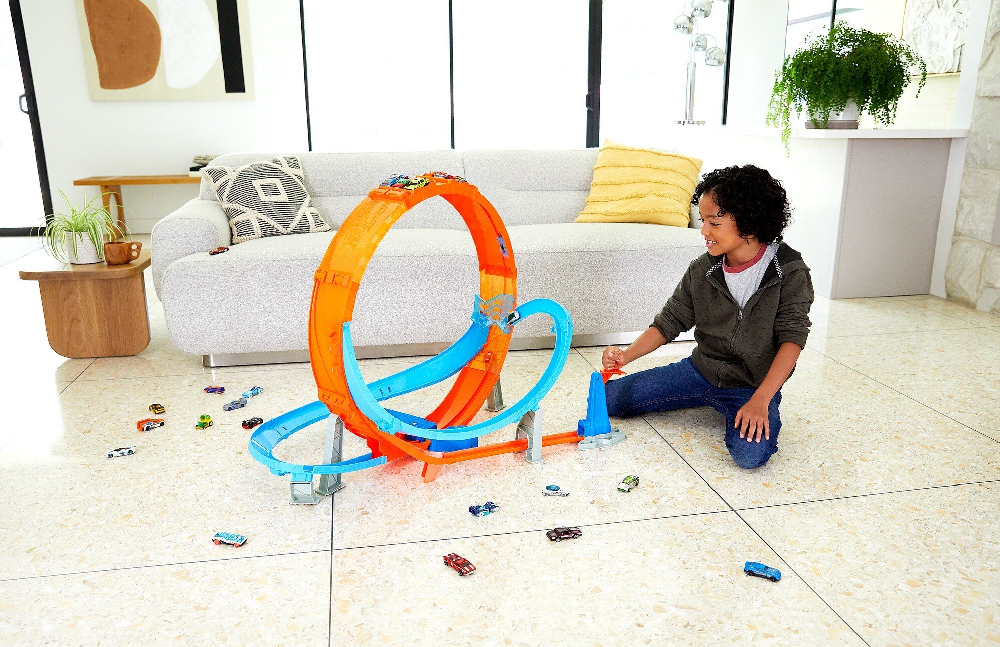 Трек Hot Wheels Action Гігантська петля Шалені зіткнення подарує дитині яскраві емоції та захопливе дозвілля. Іграшка сподобається малюкам, які обожнюють швидкість та шалені трюки. Гігантська петля має 70 см у діаметрі, а це означає що екстрим та захопливі емоції гарантовані. Не всім гонщикам вдається подолати петлю, не вилетівши із траси або не зіткнувшись із перешкодами. Тренуйтеся у вправності запуску, щоби ваш автомобіль подолав усі небезпечні повороти й здобув перемогу! А ще набір можна доповнити деталями з інших комплектів Hot Wheels для ще цікавішої гри.