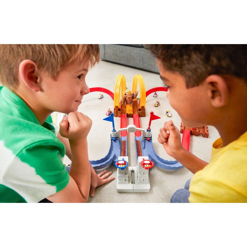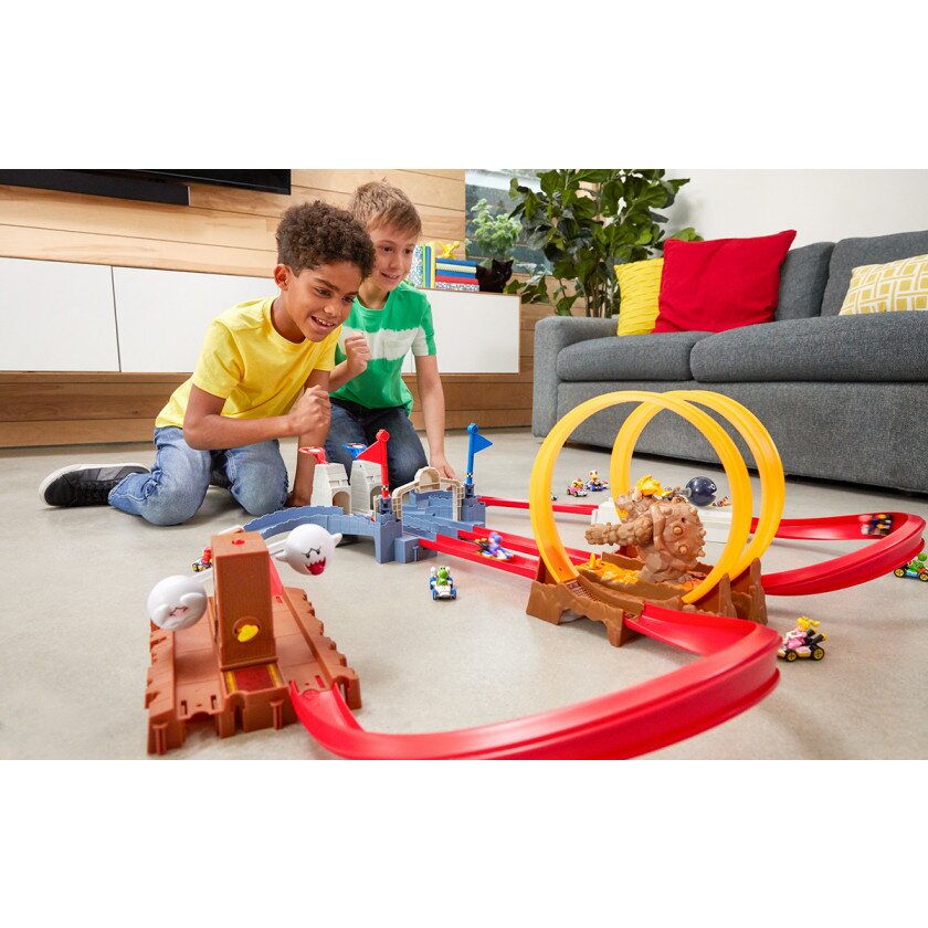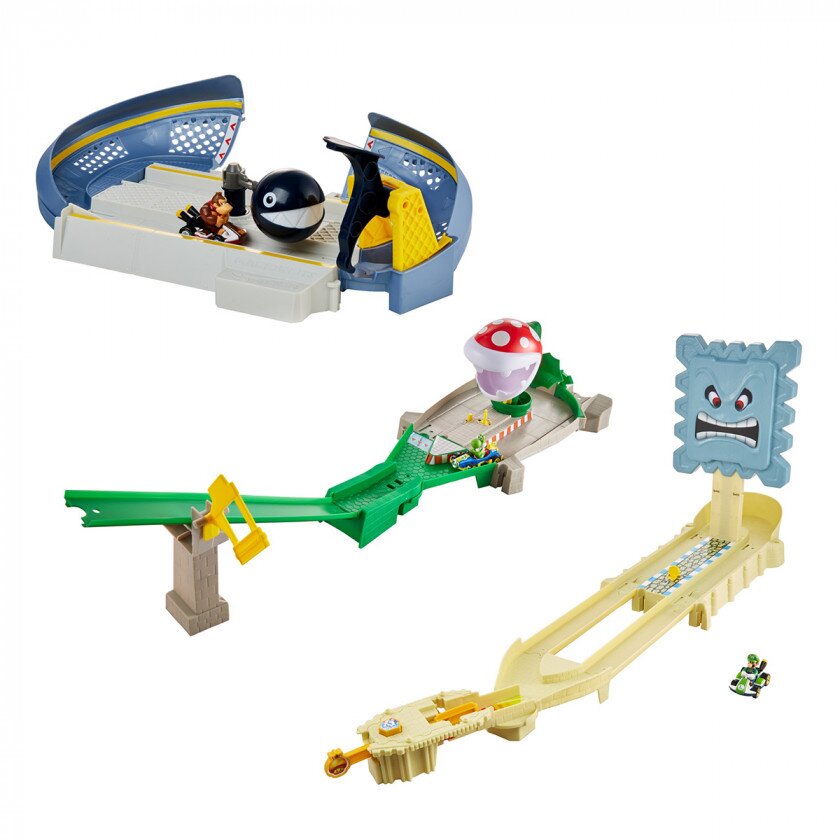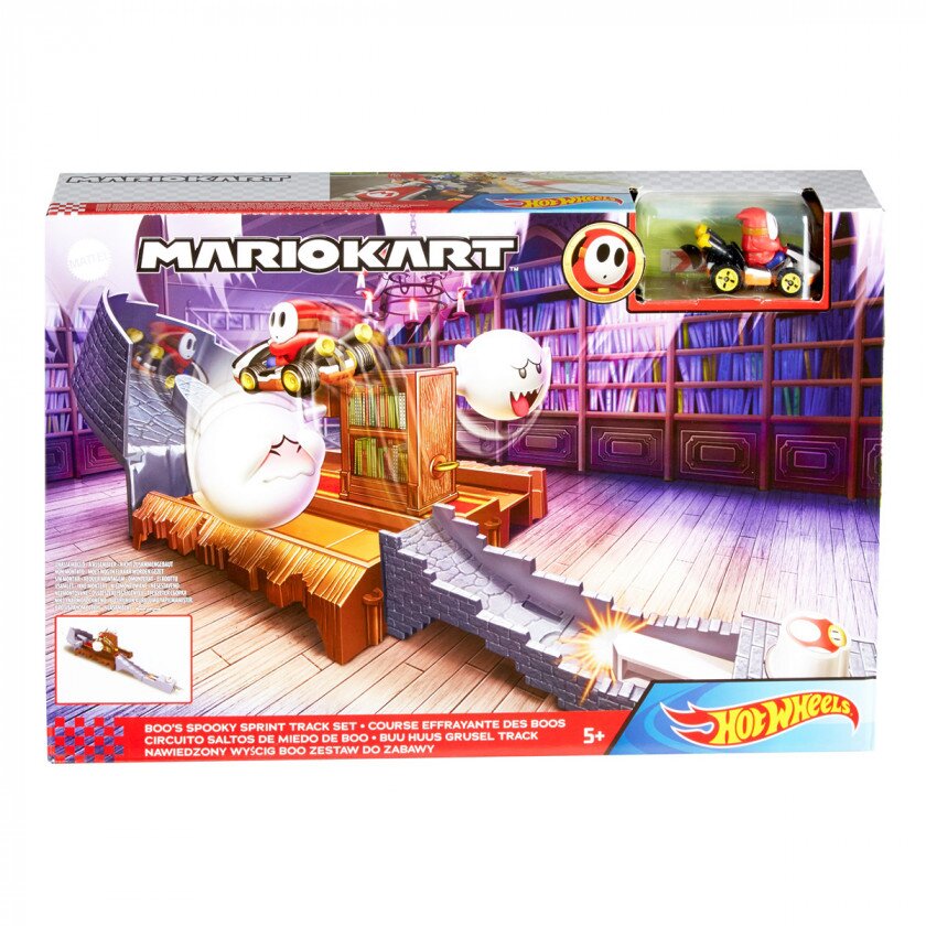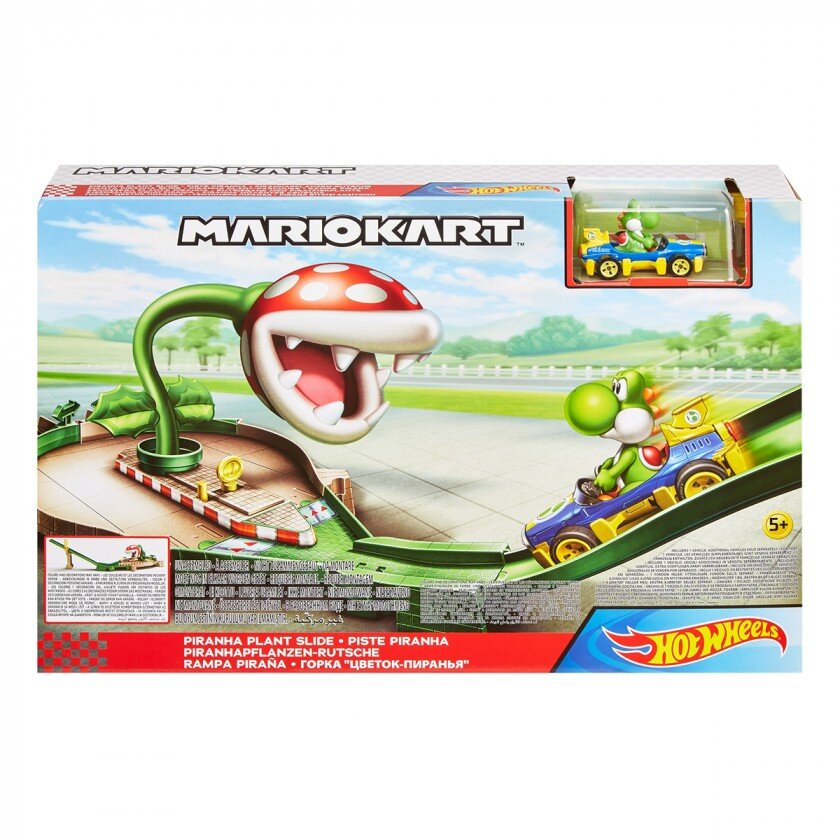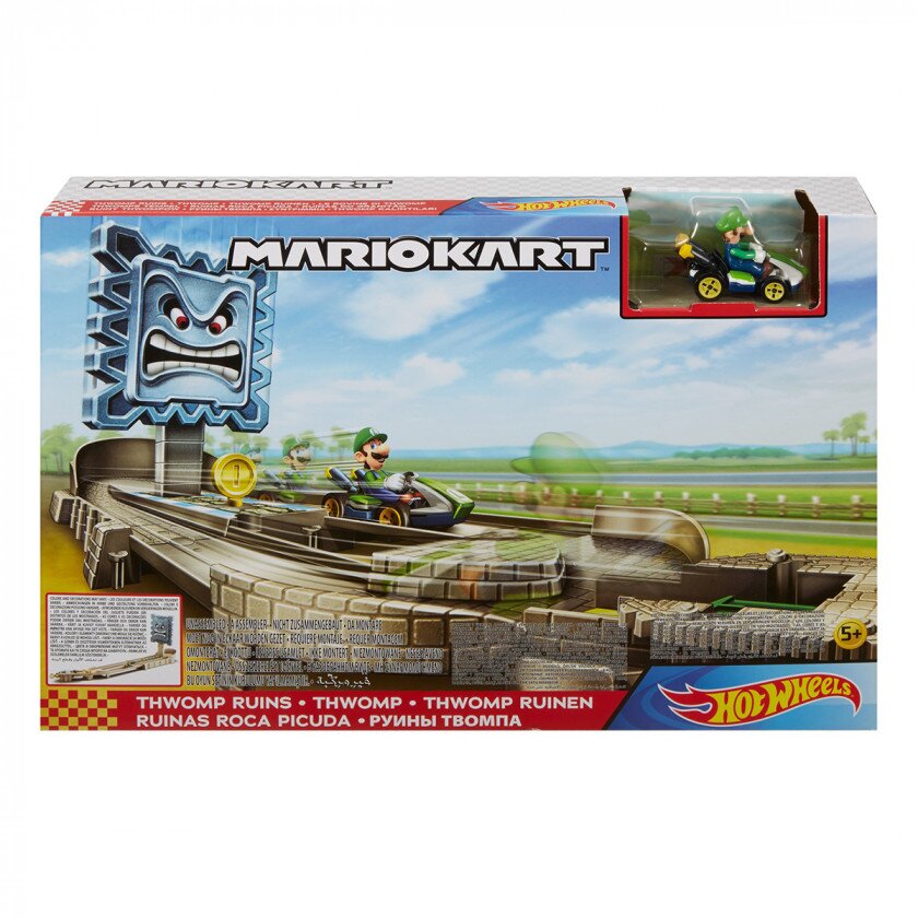 Як і в оригінальній відеогрі, діти змагатимуться в гонках на картах, керуючи своїм персонажем на крутих віражах траси від HotWheels. Міцна лита машинка з металу готова до виконання трюків і пригод на треку. Головне завдання юного гонщика — залишитися на трасі і пройти її до кінця. Дизайн треку і машинки-карта детально повторює персонажа гри, діти зможуть вигадувати свої власні історії або згадувати ігрові епізоди.Особливості Трека HotWheels Атака заклятих ворогів Mario Kart (в асорт): в асортименті яскраво оформлений трек і машинка — за мотивами гри Mario Kart;корпус машинки виконаний з металу за технологією die-cast; яскраве оформлення, що запам'ятовується; сумісний з машинками HotWheels Mario Kart.