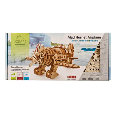 Літак Скажений Шершень від Ugears — це дерев'яна модель середнього рівня складності.