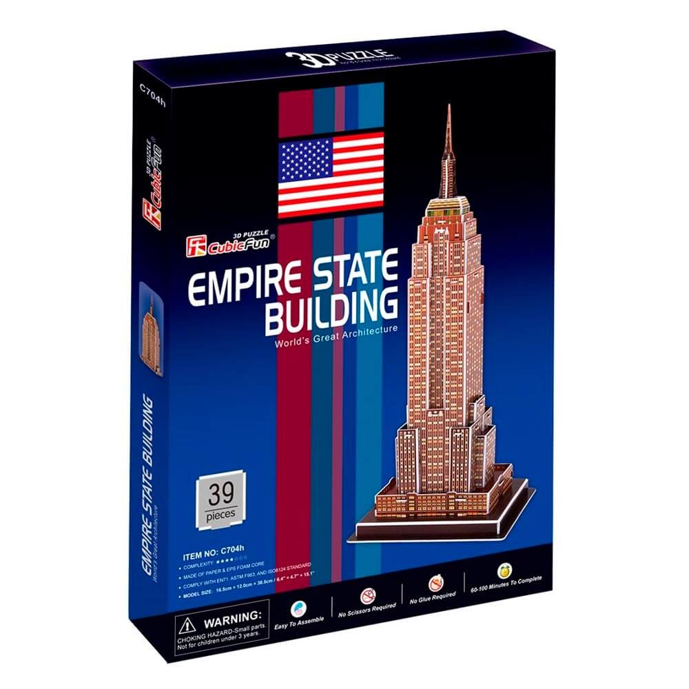 Тривимірна головоломка-конструктор CubicFun Емпайр Стейт Білдінг (C704h) дасть можливість юному архітектору побудувати легендарний хмарочос на острові Манхеттен. Empire State Building - це одна з найвищих будівель в Нью-Йорку і у всьому світі, має 102 поверхи. Він є не просто офісним центром, а також і свідком становлення сучасного Нью-Йорка. Тепер насолодитися виглядом цієї прекрасної споруди можна прямо у себе вдома разом з тривимірною головоломкою від Cubic Fun "Емпайр Стейт Білдінг". Зібрати даний конструктор не складно: у нього входять деталі з ламінованого картону, які легко з'єднуються між собою. Вам знадобиться лише трішки терпіння, логіки і уваги для того, щоб нью-йоркський хмарочос засяяв вогнями перед вашими очима!
