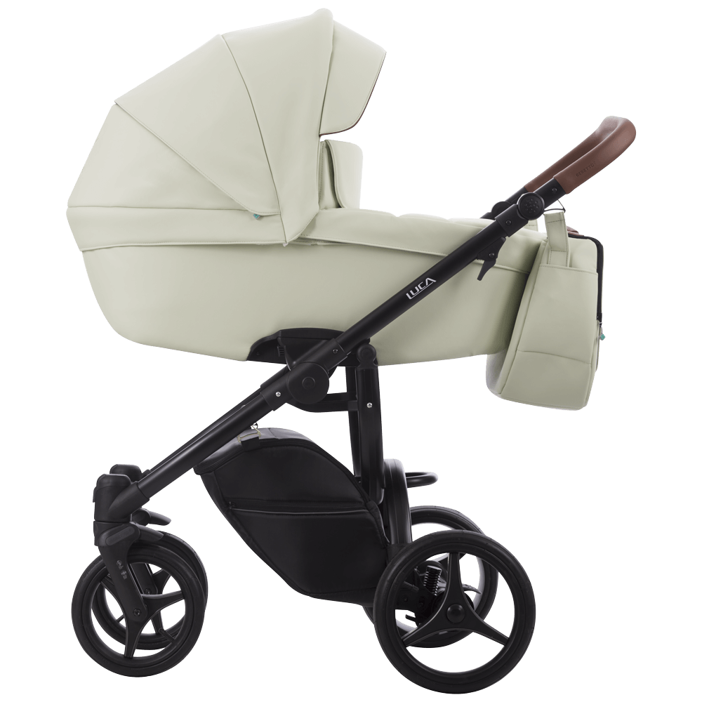 - Дизайн лінійки Bebetto LUCA PRO відрізняється використанням для оббивки всієї коляски еко-шкірою високої якості.