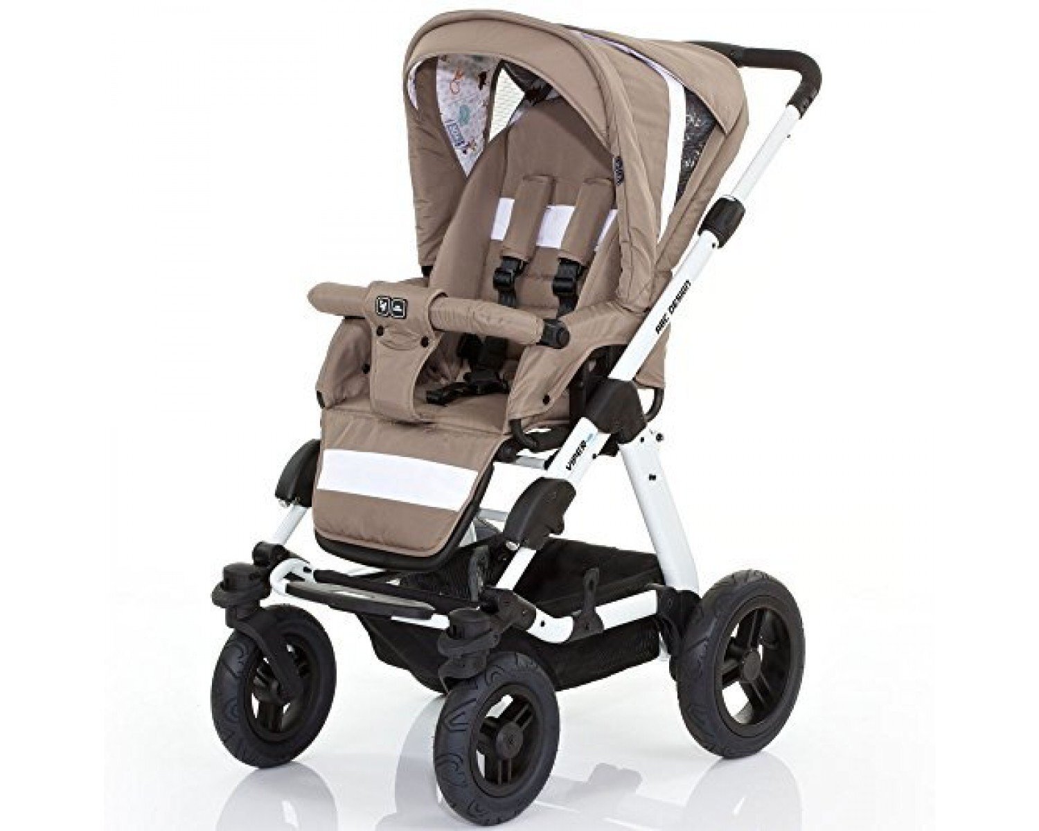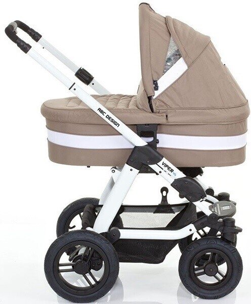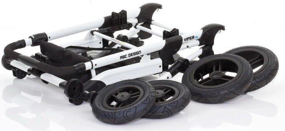 Універсальна коляска 2 в 1 від ABC Design Viper 4S призначена для дітей з народження і до 3-х років, багатофункціональна і практична. Коляска Viper 4S відзначається надійністю і підвищеною прохідністю, завдяки алюмінієвій конструкції і великим надувним колесам. Телескопічна ручка, що регулюється по висоті. Сидіння можна розташувати по ходу або проти руху. Коляска незамінна в умовах зими і бездоріжжя. Коляска має міцну, широку раму, великі передні колеса з можливістю обертання на 360 градусів, просторе сидіння, посилену амортизацію, водовідштовхувальне покриття зі світловідбивачами. Спеціальний транспортний фіксатор забезпечує збереженість складеної коляски під час перевезення.