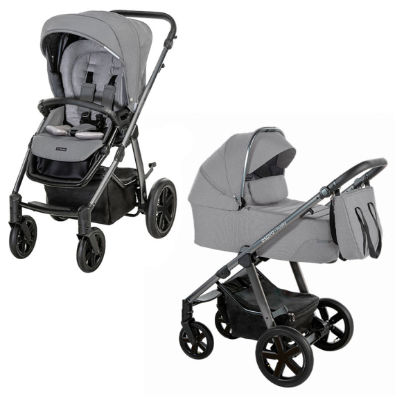 У комплект входить: шасі зі знімними надувними колесами, корзина для покупок, люлька, матрацик в люльку, дощовик для прогулянкового блоку, дощовик для люльки, прогулянковий блок, бампер для прогулянкового блоку, теплий зимовий конверт, пеленальний матрацик, муфта для рук, двостороння флісова ковдра, тримач для пляшечки