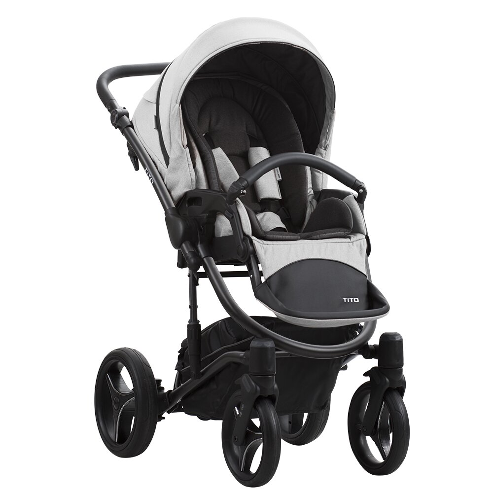 Коляска Bebetto Tito New з встановленим прогулянковим сидінням є надзвичайно функціональним транспортом для малюків від 6 місяців. Сидіння надає можливість перевозити дитину як обличчям до мами, так й обличчям вперед. Підпружинений механізм автоблокування у капюшоні полегшує його настроювання. Прогулянковий блок оснащений бампером, який швидко знімається завдяки зручним кнопкам.