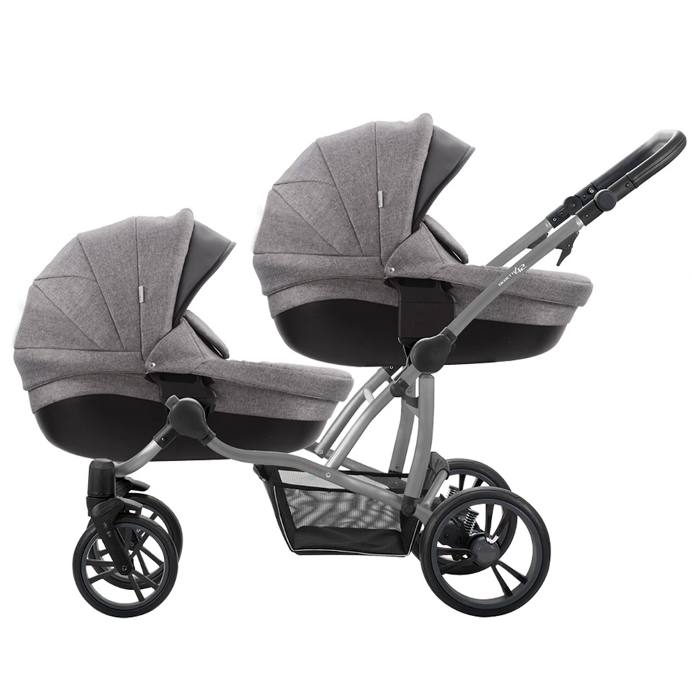 Польська коляска Bebetto 42 Premium New комплектується всіма модулями й аксесуарами, необхідними для комфортної прогулянки з двома дітьми: 2 колиски, 2 прогулянкових блоки, 2 дощовики, 2 москітні сітки. На раму за допомогою адаптерів можна встановити 2 автокрісла вікової групи 0+ від популярних європейських виробників. Коляска дозволяє красиво вирішити питання прогулянок з двійнятами або погодками.