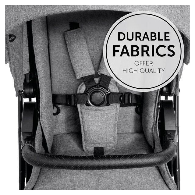 Сучасні меланжеві тканини на люльці та сидінні, що легко піддаються догляду, доповнюють високоякісний інтер'єр.
