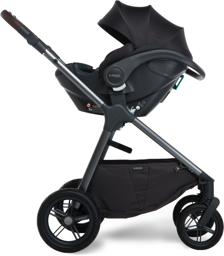 Візок може бути представлений в комплектації 2 в 1, а також в разі потреби дуже легко за допомогою адаптерів зробити комплект 3 в 1 з оригінальним автокріслом з народження бренду Mast модель M-zero.