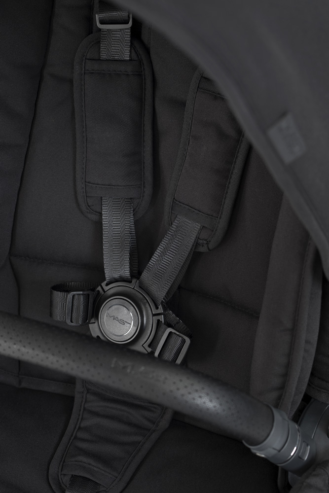 Легка рама виготовлена з алюмінію, а підвіска на всіх колесах коляски M.5x забезпечує ідеальний хід.
