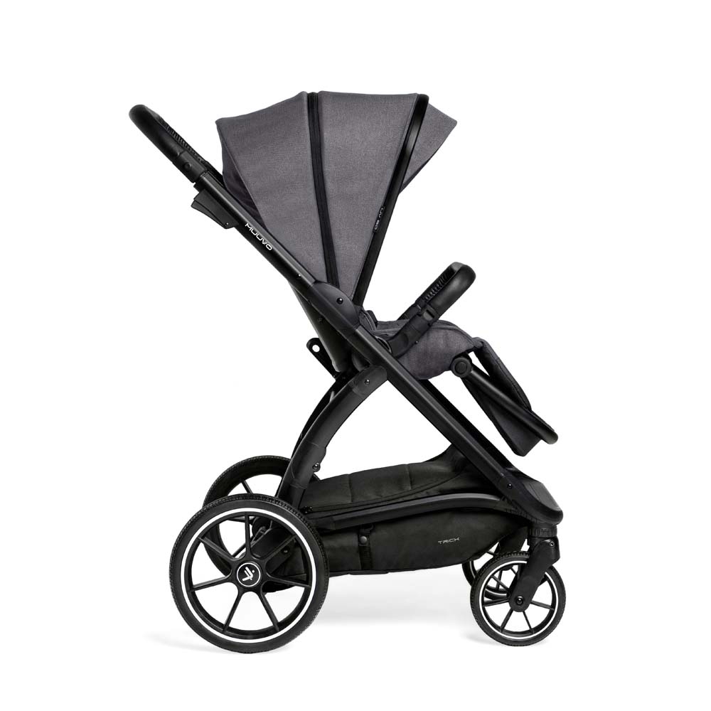 Trick оснащена великими гелевими колесами, які не потребують обслуговування, зимовим спальним мішком і бампером, що відстібається з обох боків. Коляску можна скласти одним рухом — у будь-якому напрямку (обличчям до батьків чи до дороги).