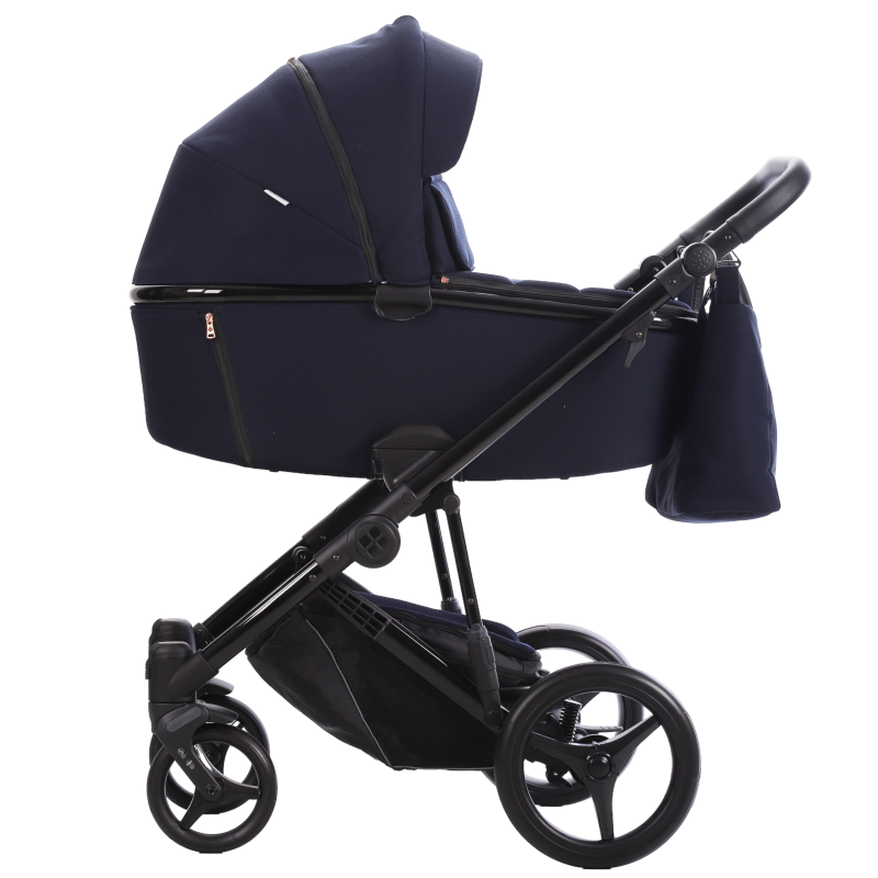 Для виробництва цієї моделі ми використовували інші типи тканини та раму з фарбуванням під чорний лак GLOSS. Це створило свій унікальний стиль та дуже вигідне враження. Рамка на люльці в колір шасі виконана в одному стилі, це об'єднує в одне ціле весь дизайн коляски, а однотонні класичні кольори оббивки вигідно підкреслюють загальну ідею. Додатковий декор та фурнітура завершують дизайн.