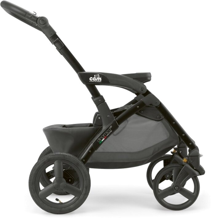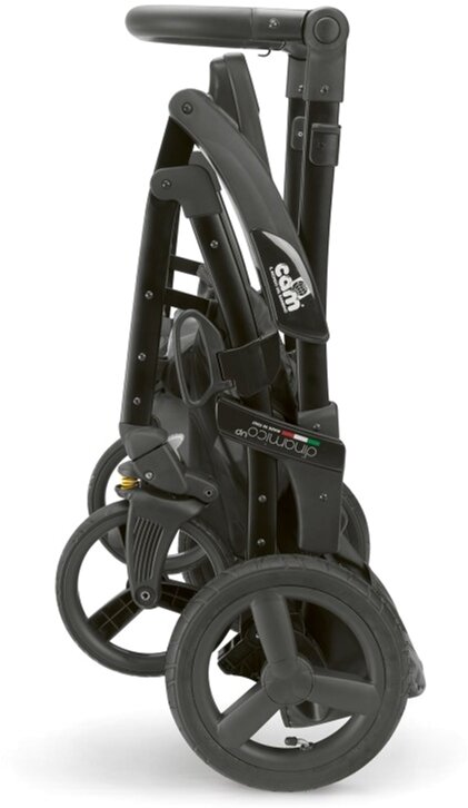 Коляска CAM Dinamico Up маневрова, легко долає перешкоди на будь-якій дорозі завдяки переднім поворотним колесам із фіксацією і великим заднім надувним колесам. Ви можете бути впевнені, що дитину не продує і їй завжди буде тепло та зручно у своєму першому транспорті. Коляска легко збирається. У зібраному вигляді займає небагато місця, стоїть самостійно. Її можна переносити за ручку, як валізу, а можна просто перевозити в багажнику автомобіля.
