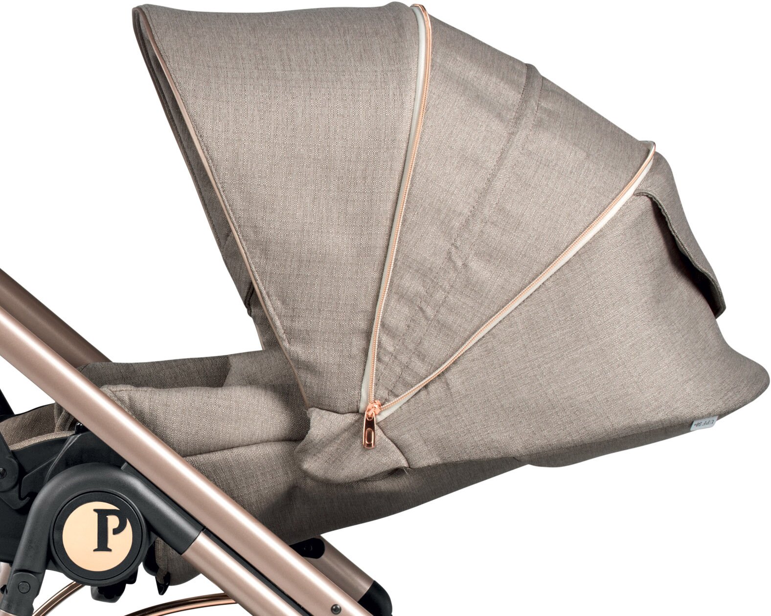 Сидіння Veloce: Реверсивне сидіння призначене для дітей від народження і до досягнення ваги 22 кг. Широке сидіння регулюється в 3х положеннях та має п'яти точкові ремені безпеки. Бампер з еко-шкіри, що відкривається. Великий капюшон на блискавці із козирком, що має захист від сонячних променів UPF 50+. Теплий чохол на ніжки.