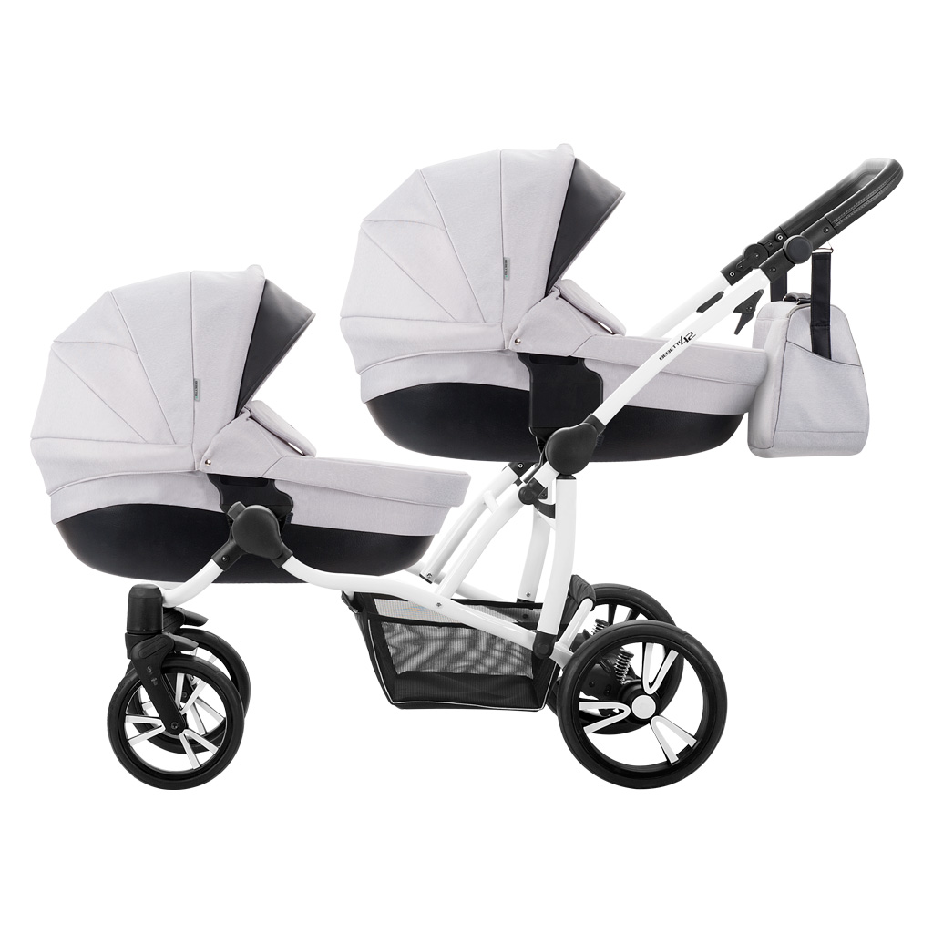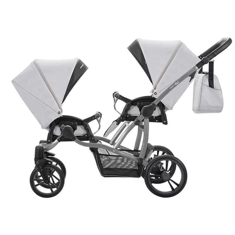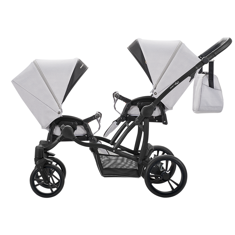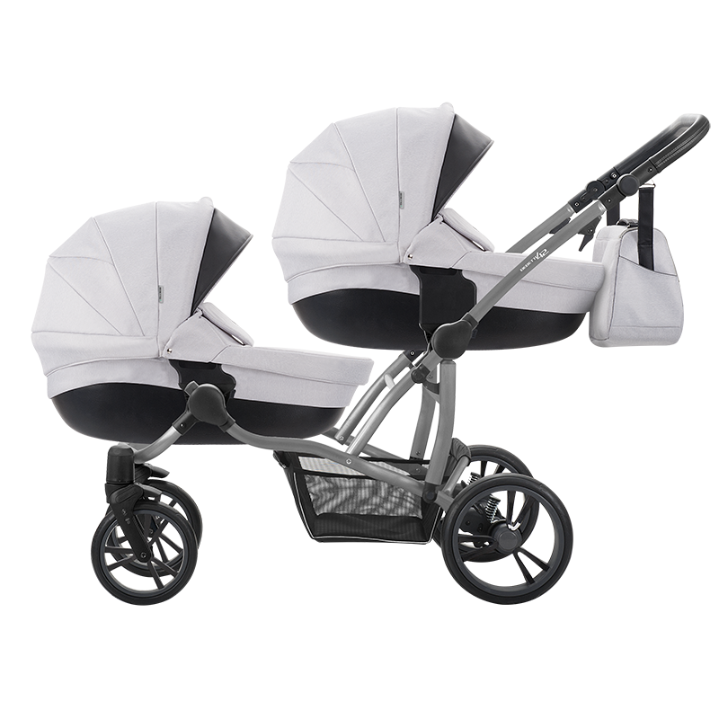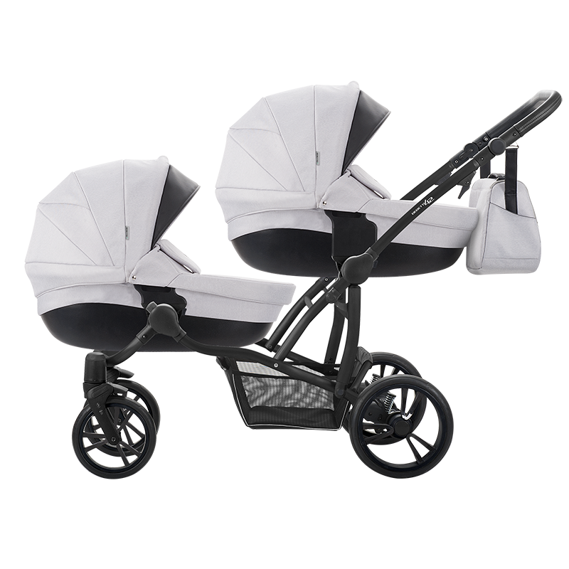 - Універсальна коляска для двійні Bebetto 42 Premium стійка за будь-якої комплектації та монтажу/демонтажу, зручна в керуванні та дуже комфортна для дітей.