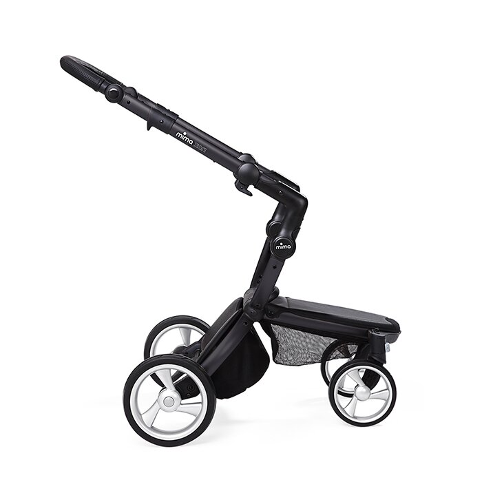 Характеристики шасі: передні поворотні колеса з можливістю блокування, м'яка амортизаційна система, легке складання і розкладання в лічені секунди, в складеному вигляді займає мінімум місця, обшита еко-шкірою ручка регулюється по висоті в 3 положеннях, 2 кошика для речей з міцними кришками на магнітах, гальмо стоянки в основі задніх коліс.